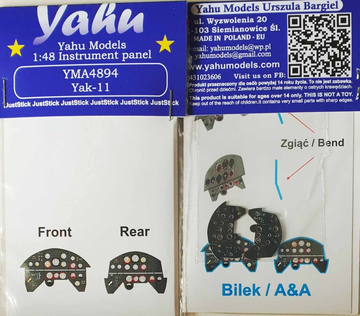 ヤフーモデル YMA4894 1/48 Yak-11 計器盤 (ビレック / A&A用)