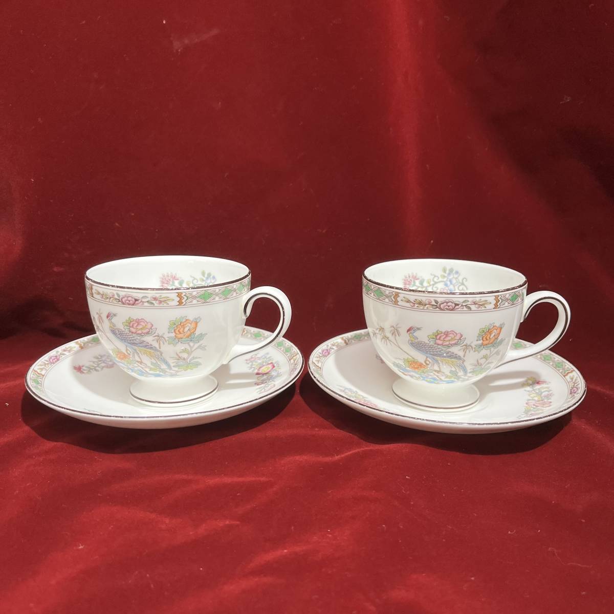 (志木)WEDGWOOD/ウェッジウッド KUTANI CRANE Bone China クタニクレーン 九谷 カップ&ソーサー 2客セット ペア ボーンチャイナ (o)