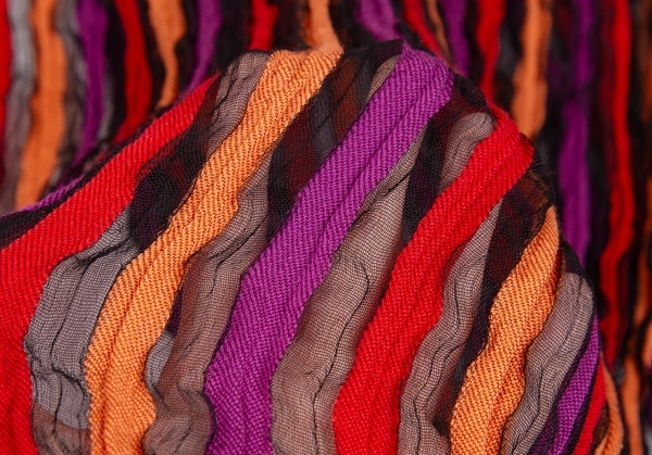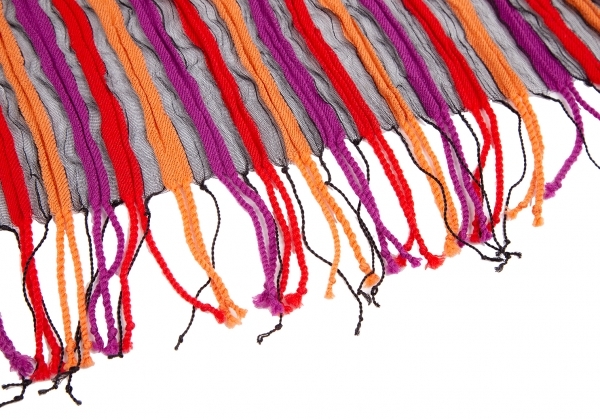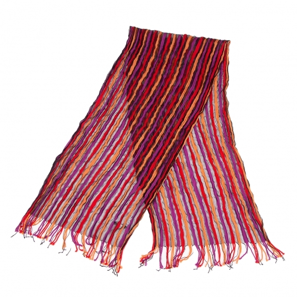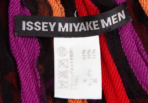 | イッセイミヤケ メンISSEY MIYAKE MEN シースルーストライプフリンジストール 黒マルチ |