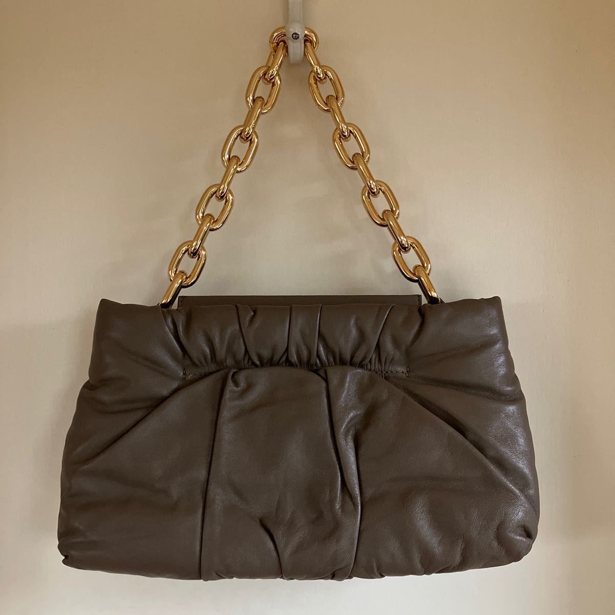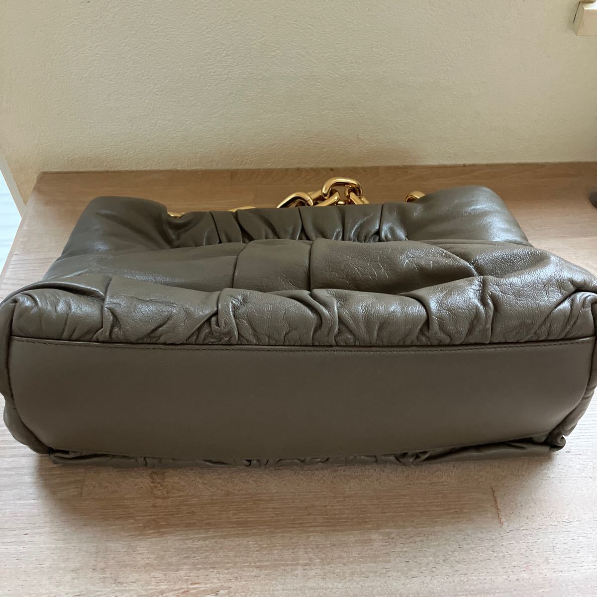 1回使用しました。付属のレザーストラップを紛失してしまいましたので、画像にありますバッグ本体のみの出品となります。見当たる難はなく、バッグ内生地のイエロー部分に黒い毛玉?のようなものがありますが、購入時からのものでした。