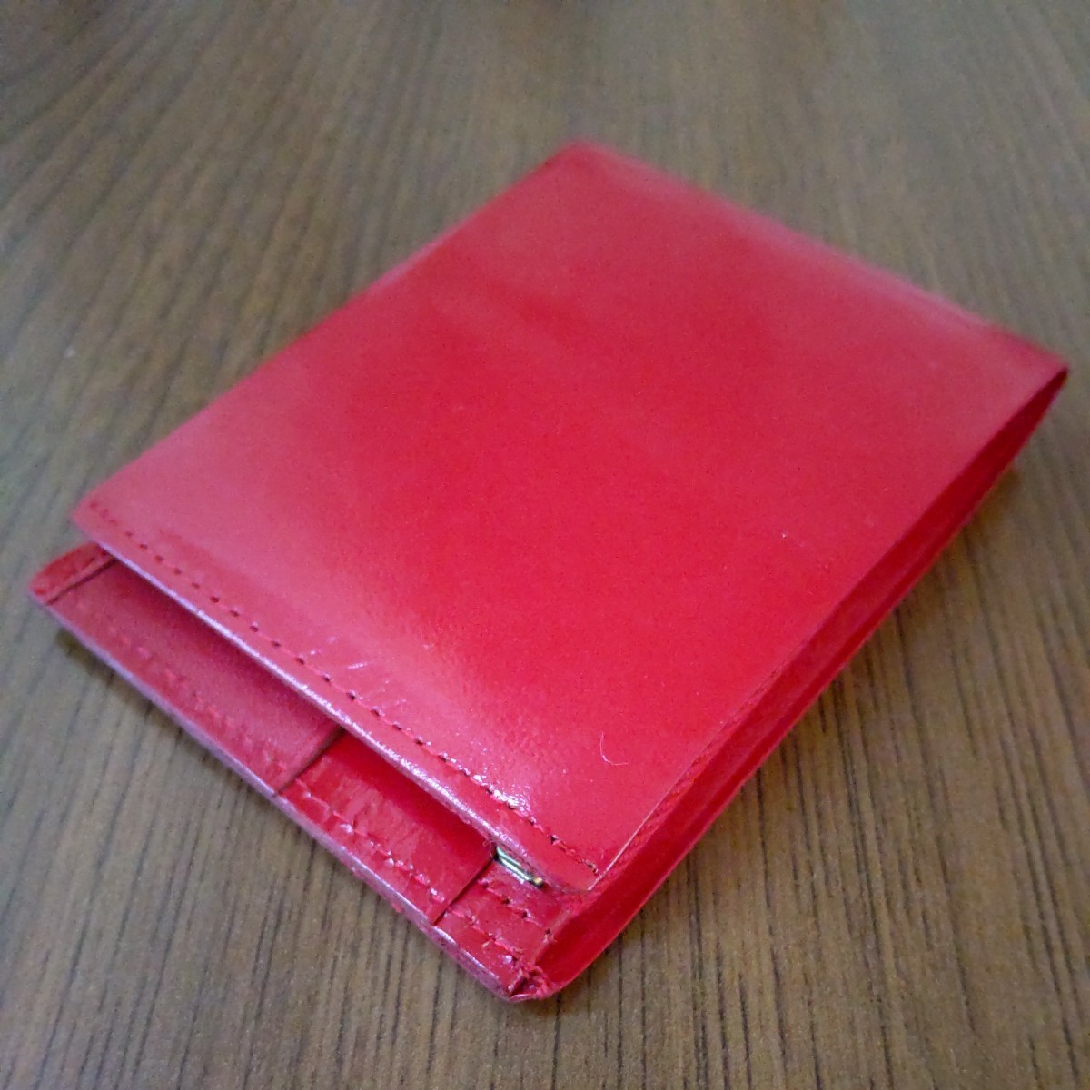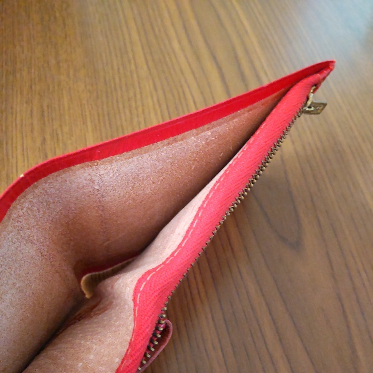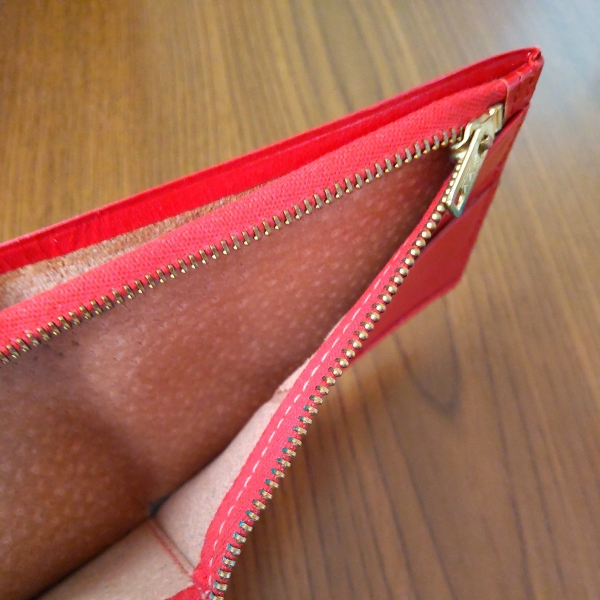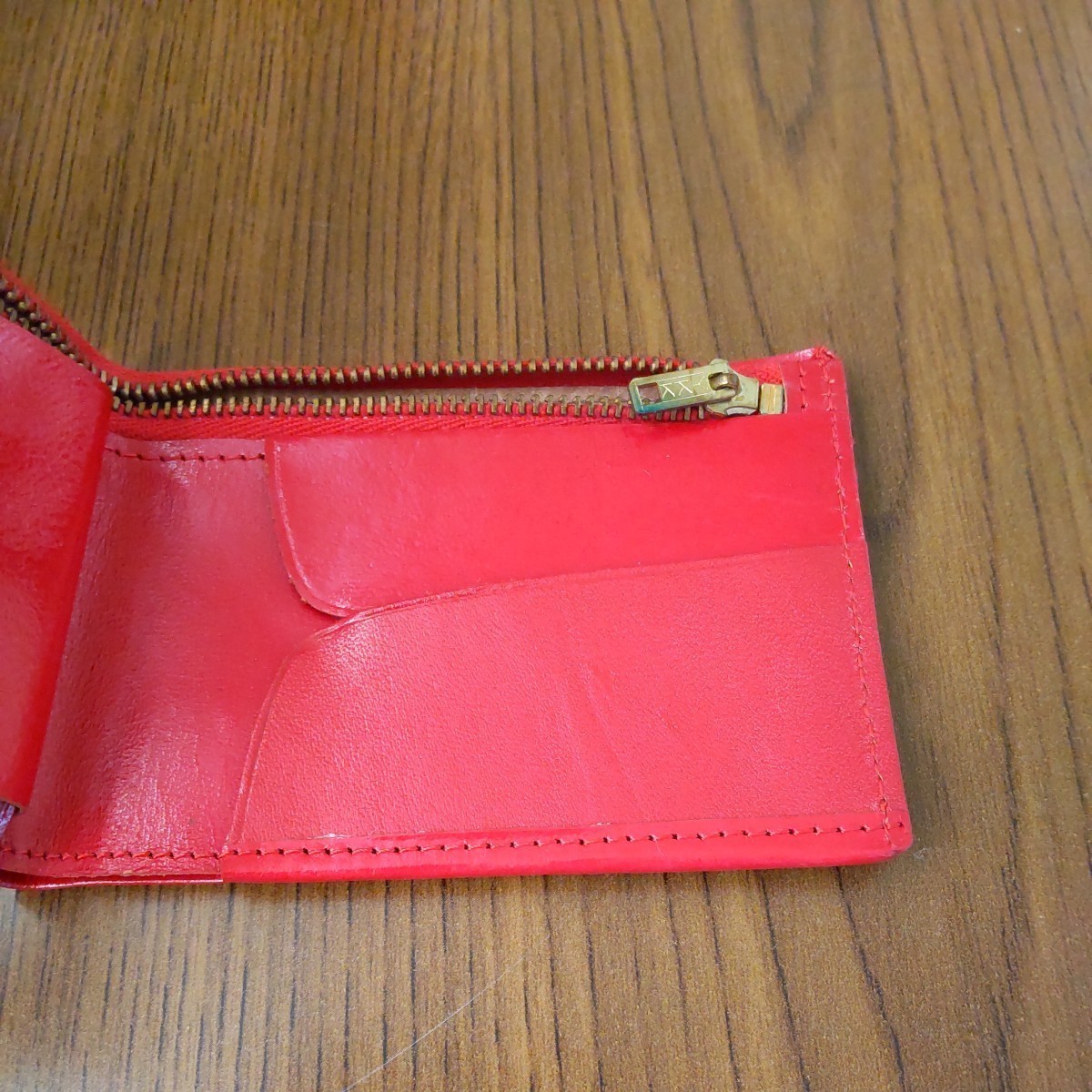 文具店在庫品☆ミツカン ファスナー付 本革ミニ財布 (赤)☆
