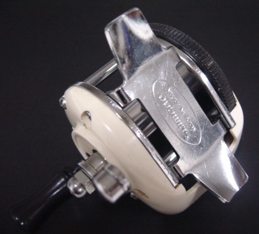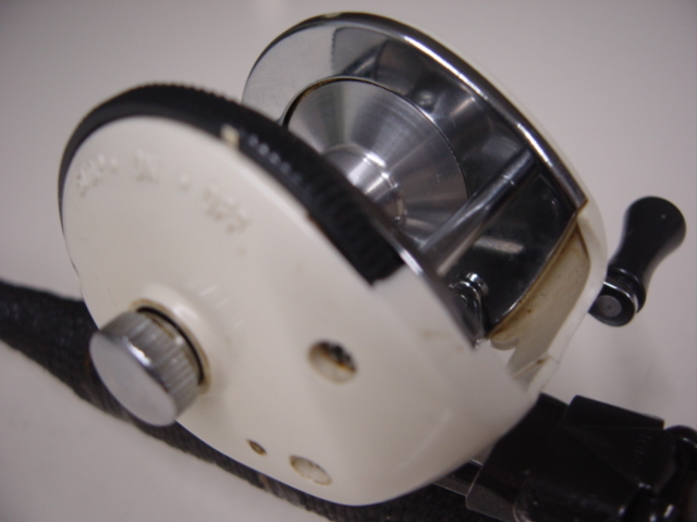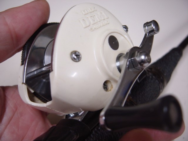 ■オールドシマノのDUX-DEMIの白色シェルです。昔流行った「たまごっち」を彷彿させるエッグシェイプで、当時G-マーク(通産省のグッドデザイン賞受賞)商品は今なおイケてます。---■アンチリバース、クリックのON/OFFとフリーの3段階クラッチの操作は左カップ前方の黒いリングで簡単の行いますので慣れればブラインドでも楽々です。::::::自重は120g、ラインキャパは2号-150m位かな?と、日本製、アルミスプールバージョンです。 ★-----用途としましては、筏のチヌ釣り用に人気がありましたが、むしろカサゴ、メバル、アイナメなどロックフィッシュの穴釣りマニアに最適な和製骨董。