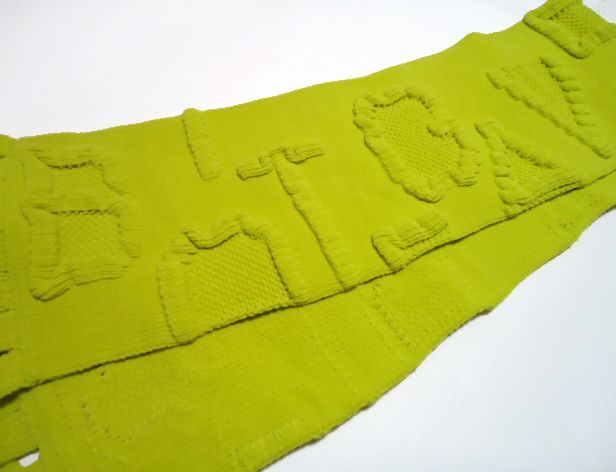 ビタミンカラーがアクセントなロゴジャガードの入ったカジュアルなマフラーです。