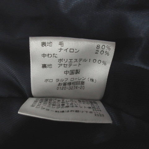 ポロジーンズ ラルフローレン POLO JEANS コート ピーコート Pコート フロッキー ミドル丈 中綿入り ウール混 ネイビー 紺 L