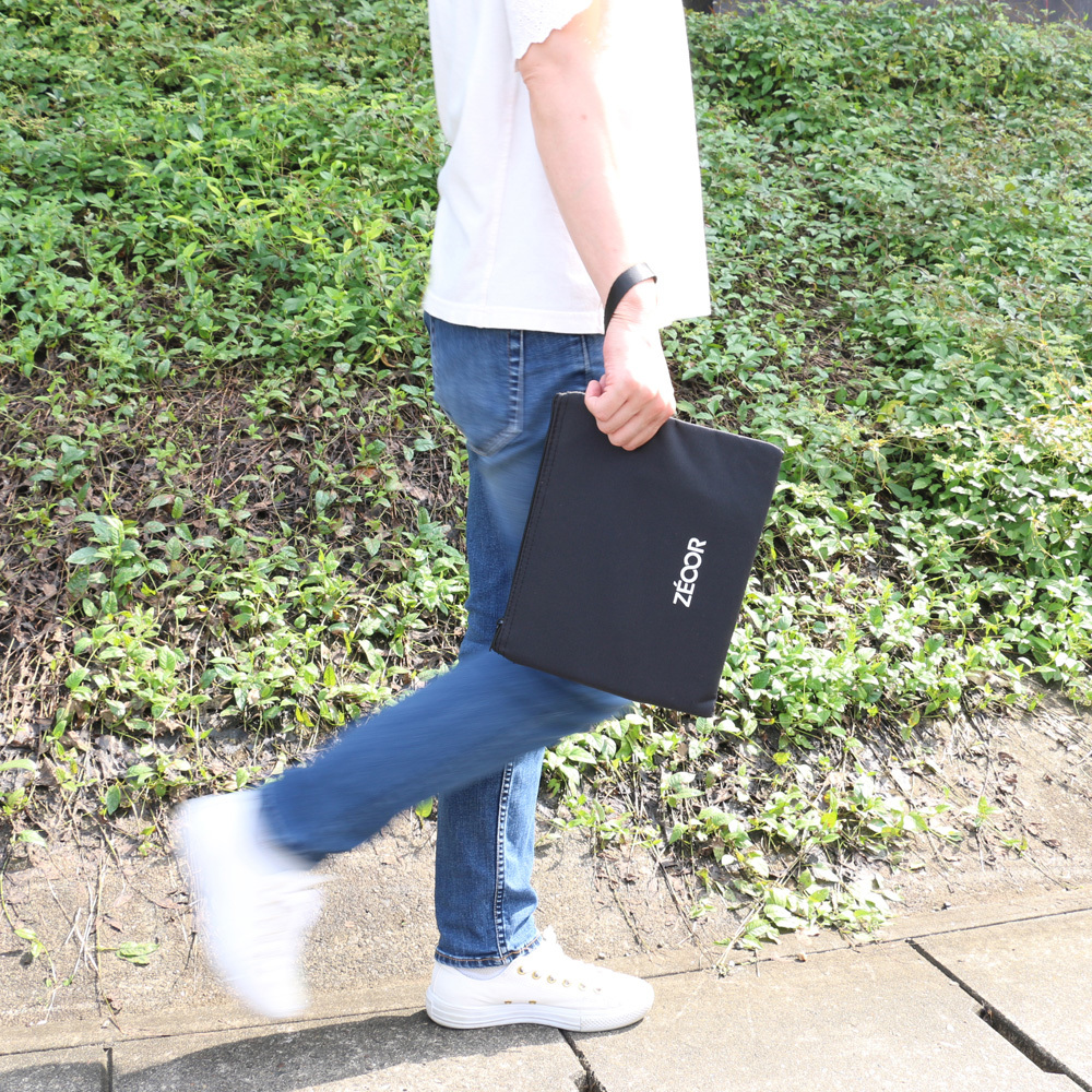 鉄板を収納できるケース付きです。表地は丈夫なポリエステル素材で、極厚鉄板を入れた状態でも扱いやすく安全にお使い頂けるようクッション性のあるウレタンを内部に入れております。