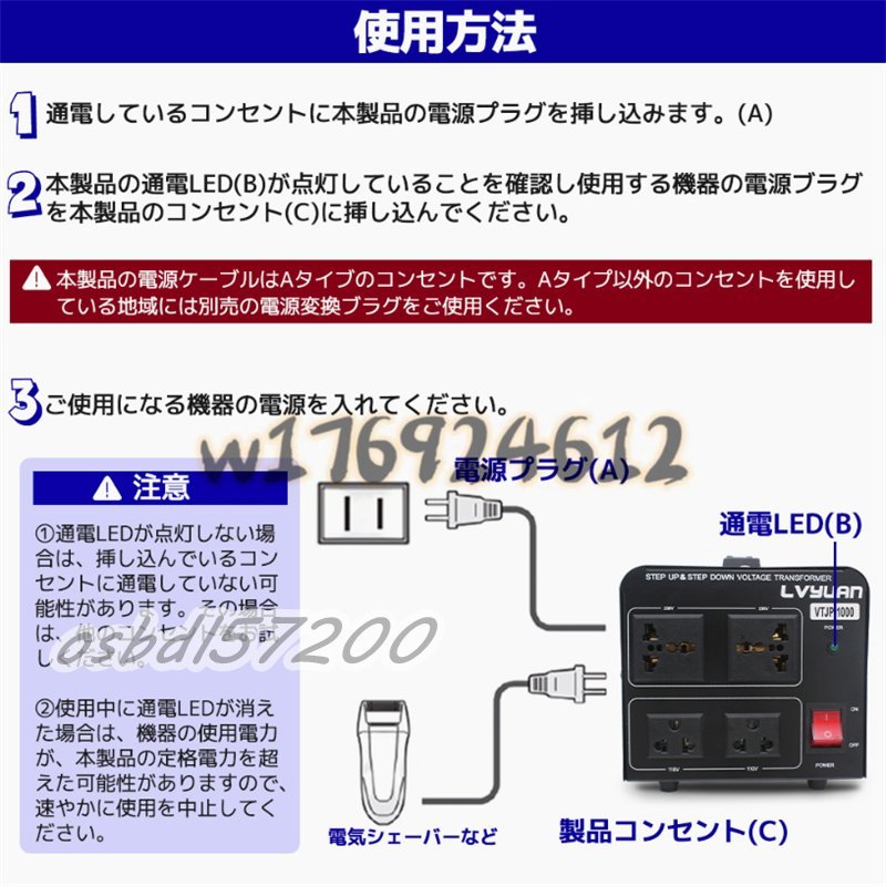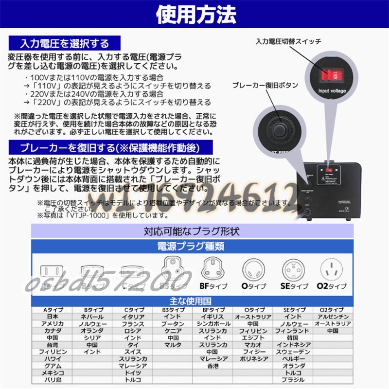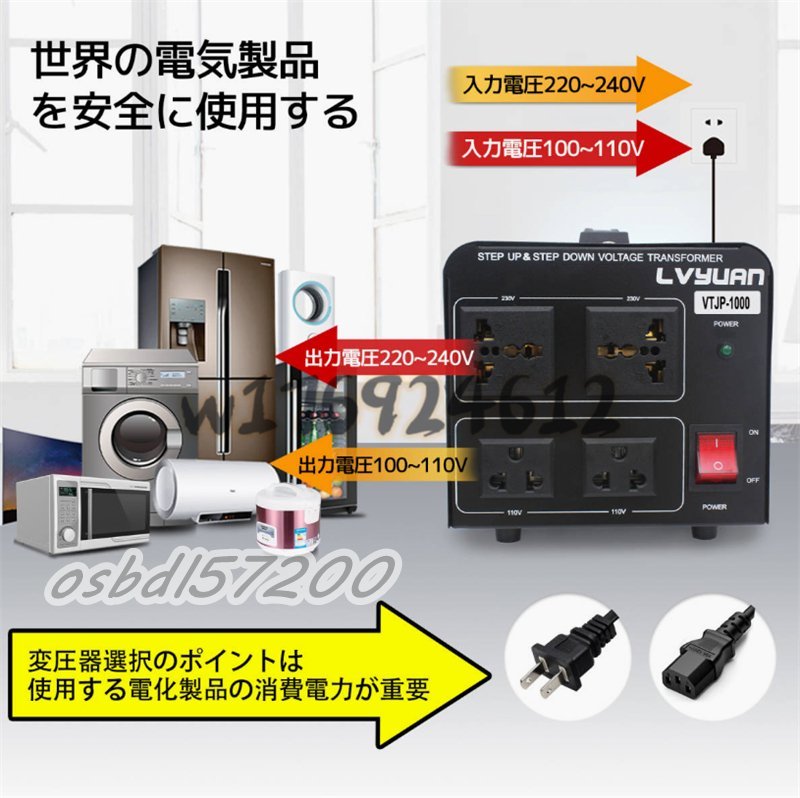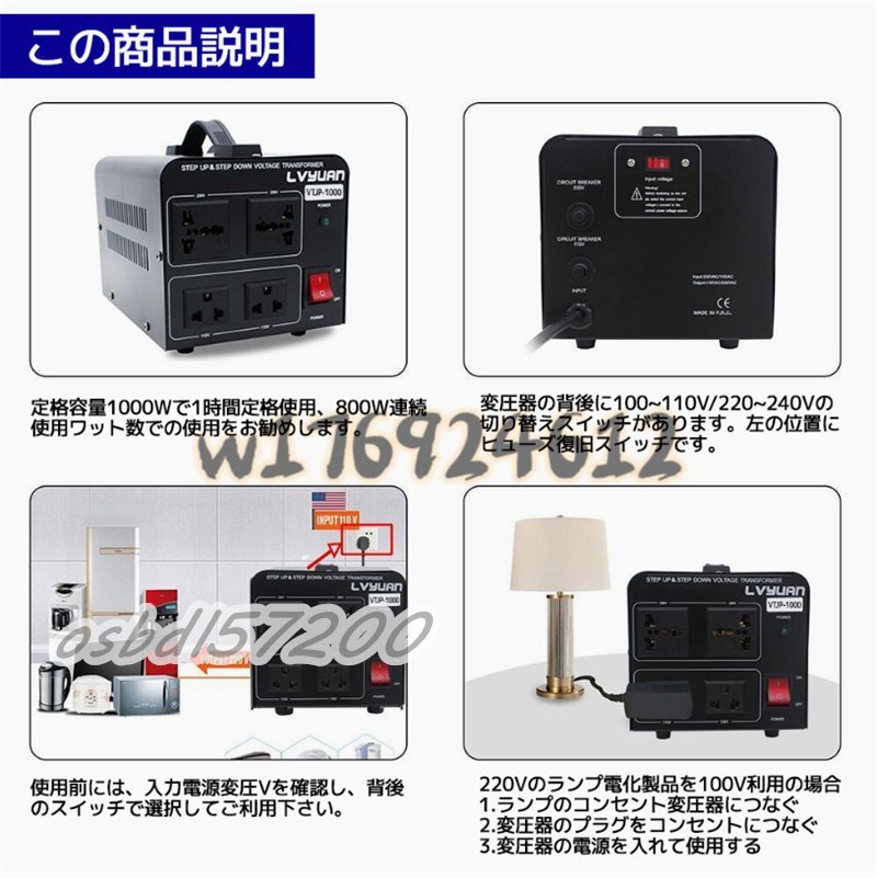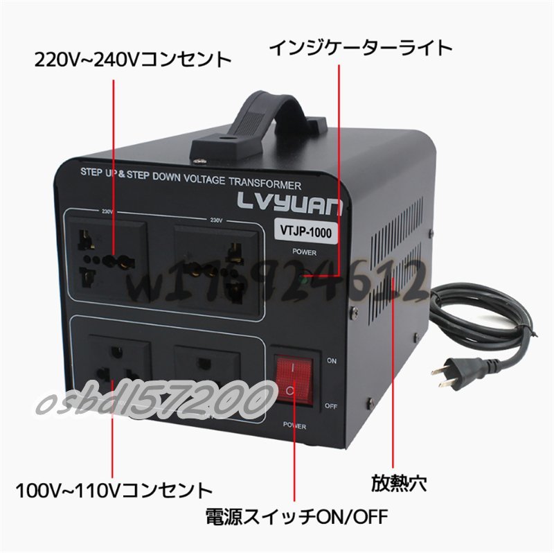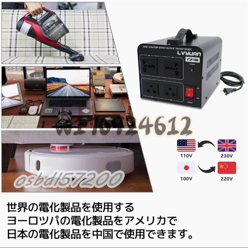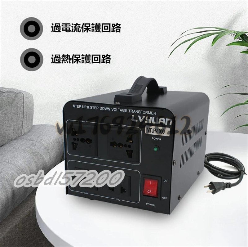 入手困難!両用変圧器 降圧 昇圧1000W トランス アップ ダウン 全世界対応 海外製品向け 100V/110V 220V/240V 変換