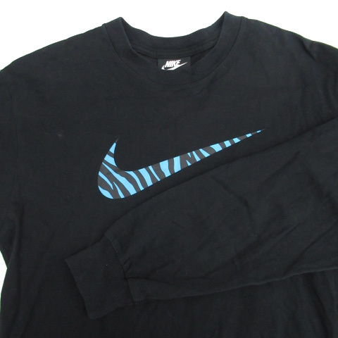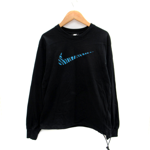 ナイキ NIKE Tシャツ カットソー 長袖 ラウンドネック プリント S 黒 ブラック 水色 ライトブルー /SM18 メンズ