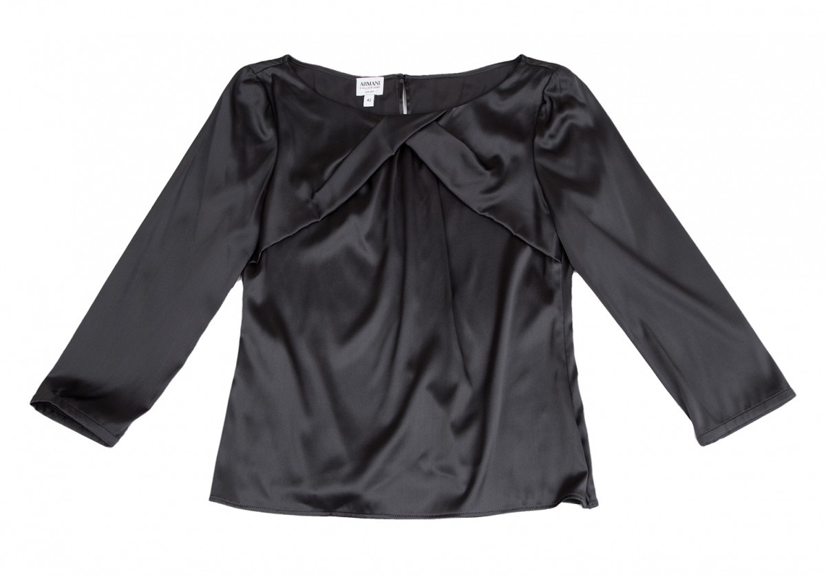 アルマーニコレツィオーニARMANI COLLEZIONI シルクフロント折返しデザインブラウス 黒42 |