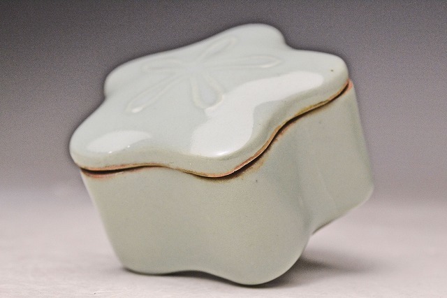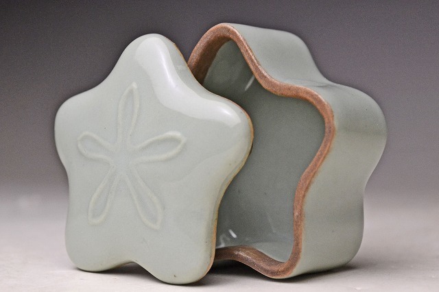 諏訪蘇山 初代 ★ 青磁 桔梗 香合 ★ 共箱 ★ 明治時代 帝室技芸員 ★ 南宋官窯を思わせる気品ある釉景と造形の逸品 ★ 香道具 茶道具 ★