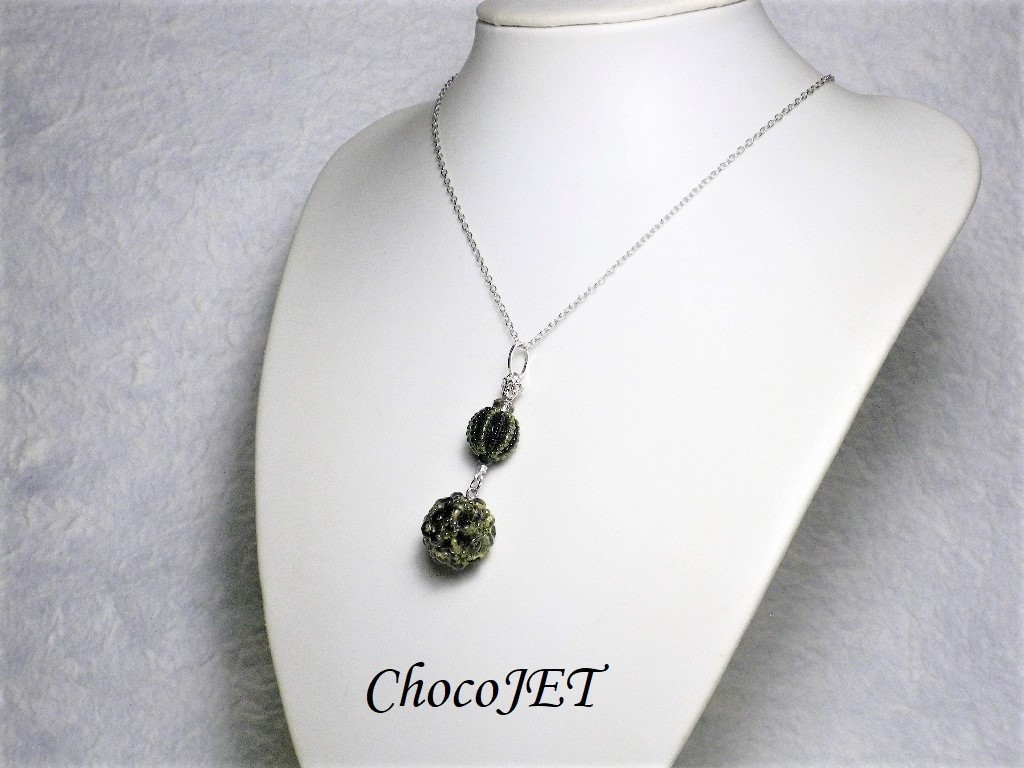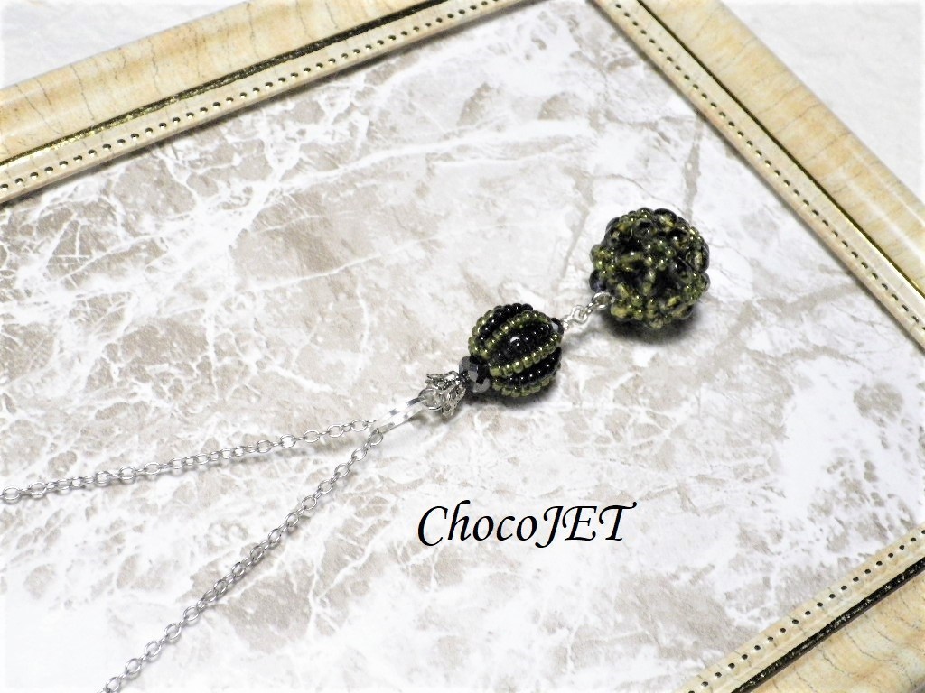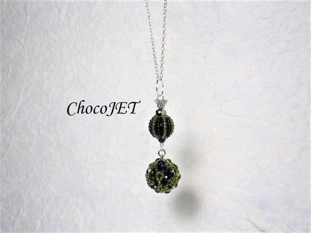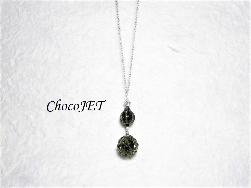 2連のチェコビーズボールとシードビーズボール、で制作したシックなビーズボールネックレスです。