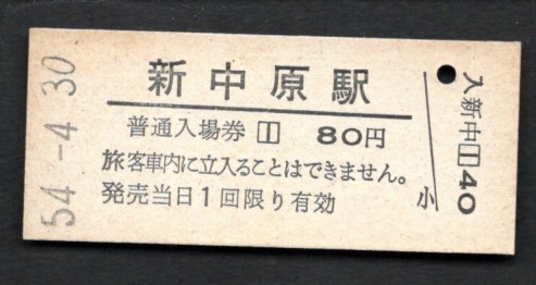 駅名改称(鹿児島本線)新中原駅80円券(現 九州工大前駅)