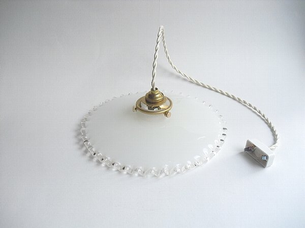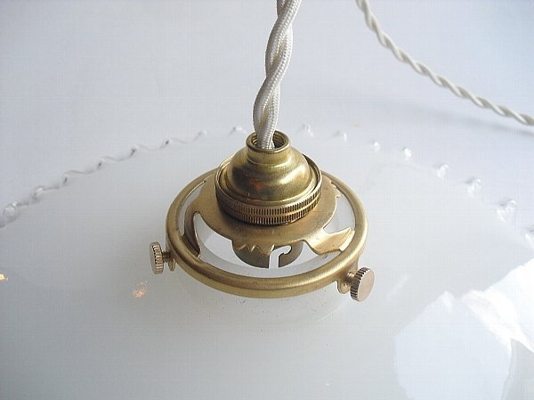 Milk Glass Pendant Light(B - frill)ペンダントライト ミルクガラス セード フリル 英国製ソケット B22 灯具一式 インテリア