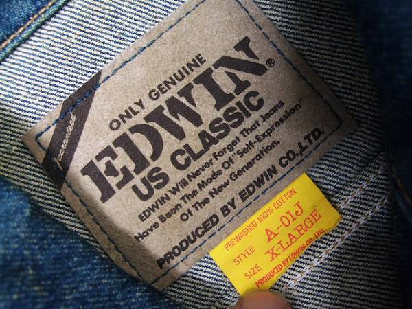 EDWIN A-01J 5465-00 ジージャンです。大きいサイズはレアだと思います。◆サイズはXLで着丈約60cm・肩幅約47.5cm・袖丈約60cm・身幅約57cmです。◆USEDですがダメージ等無く状態は良好です。襟折り返しに黄ばみ多少有ります。◆