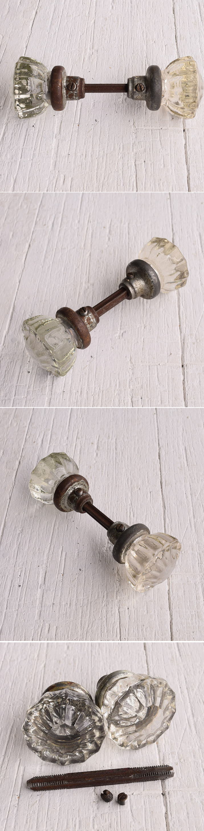 イギリスの蚤の市で見つけてきた、 ガラス製ドアノブセットです。 使い込まれた風合いがとても素敵です。 大きなダメージ無くコンディション良好です。