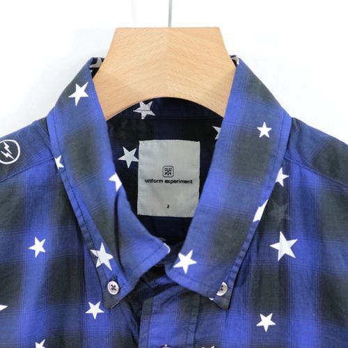 コメント:uniformexperiment ユニフォームエクスペリメント 16AW STAR PRINT FINE LOAN CHECK B.D SHIRT スタープリントチェックボタンダウンシャツ UE-167071定価¥27500