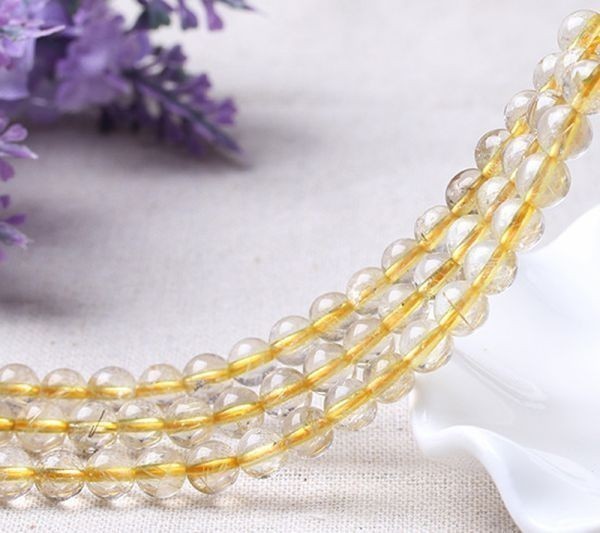 [EasternStar] 海外発送 5A ルチルクォーツ パワーストーン Rutilelated quartz 玉サイズ7mm 手作り 1連売り 長さ約40cm