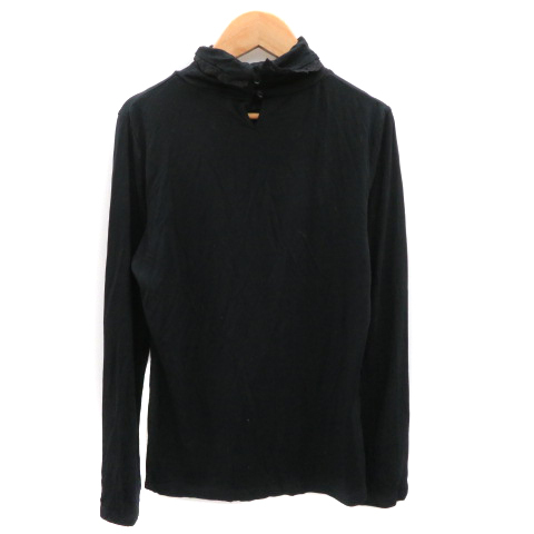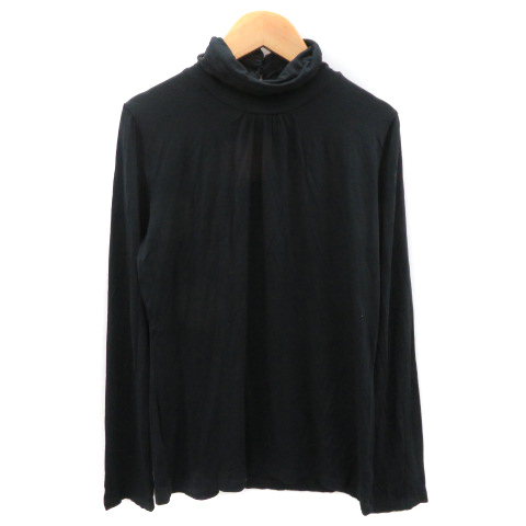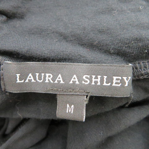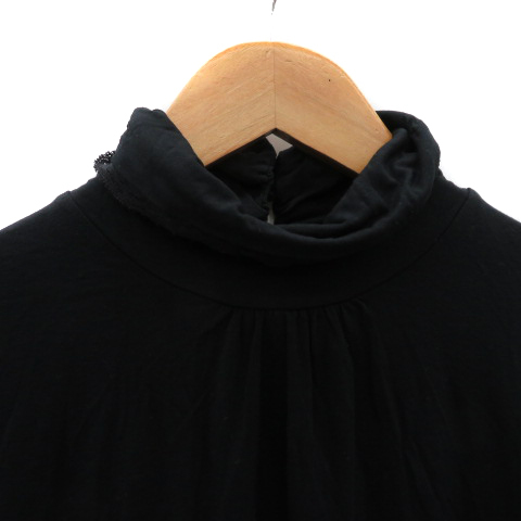 ローラアシュレイ LAURA ASHLEY カットソー 長袖 ハイネック レース 無地 M 黒 ブラック /YK47 レディース