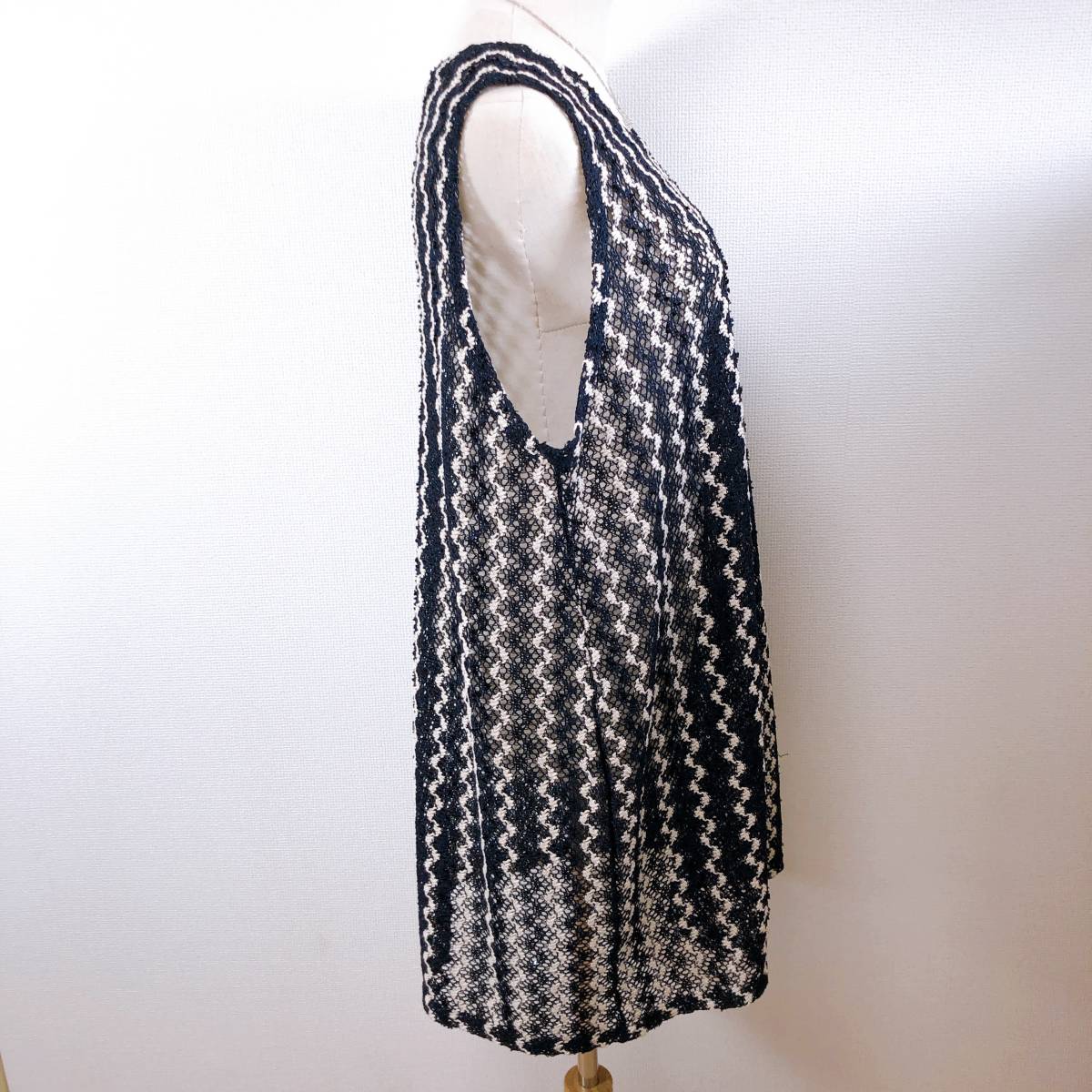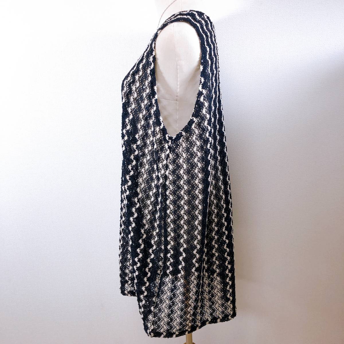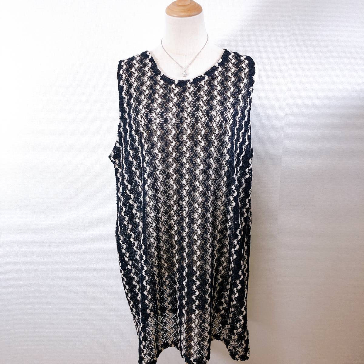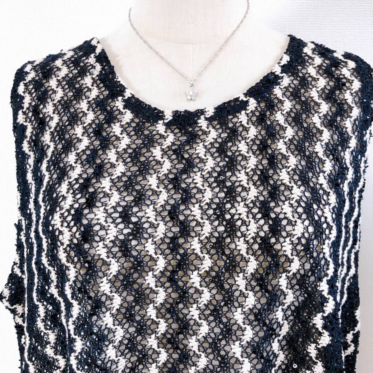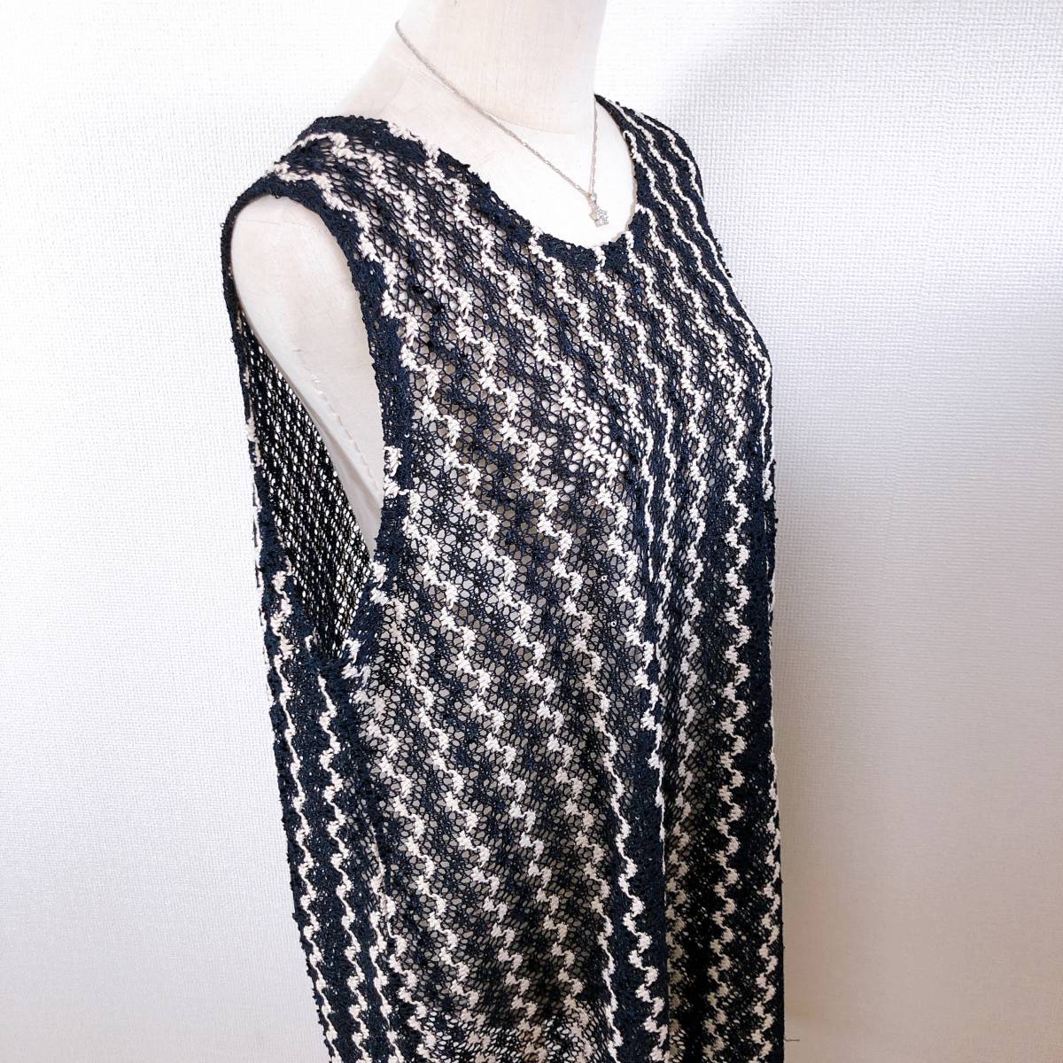 WS0374 美品 インフィニー レディース チュニック 韓国製 人気 M〜L ネイビー(紺) スパンコール ポリエステル 上品 レース