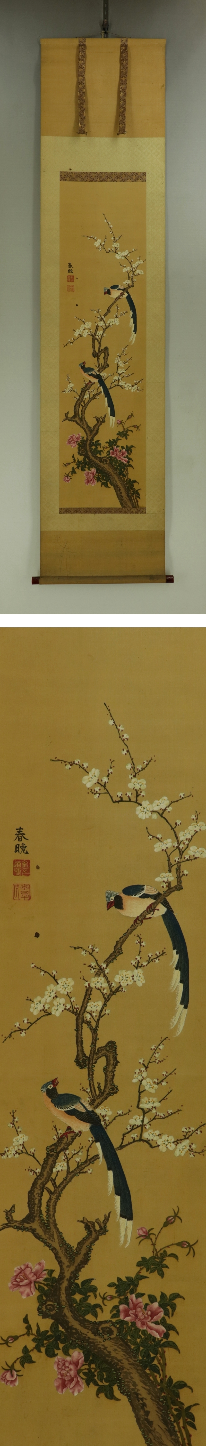 | №2308012【肉筆】古画【花鳥図】◆絹本◆合箱◆掛軸 | |