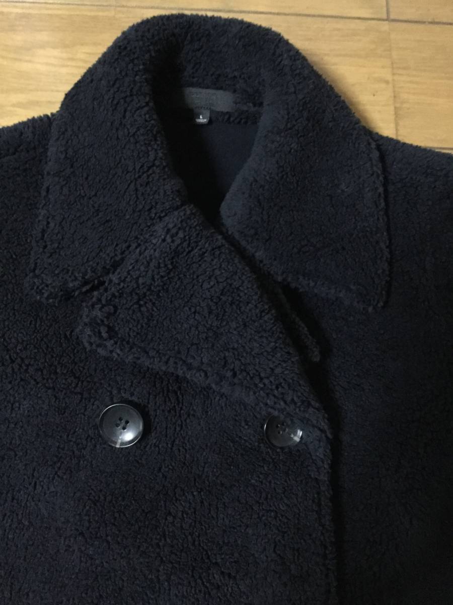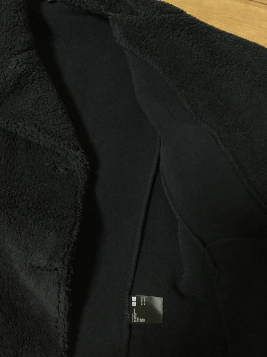 美品女性用UNIQLOユニクロボアジャケット紺色L。着丈67cm身幅48cm。