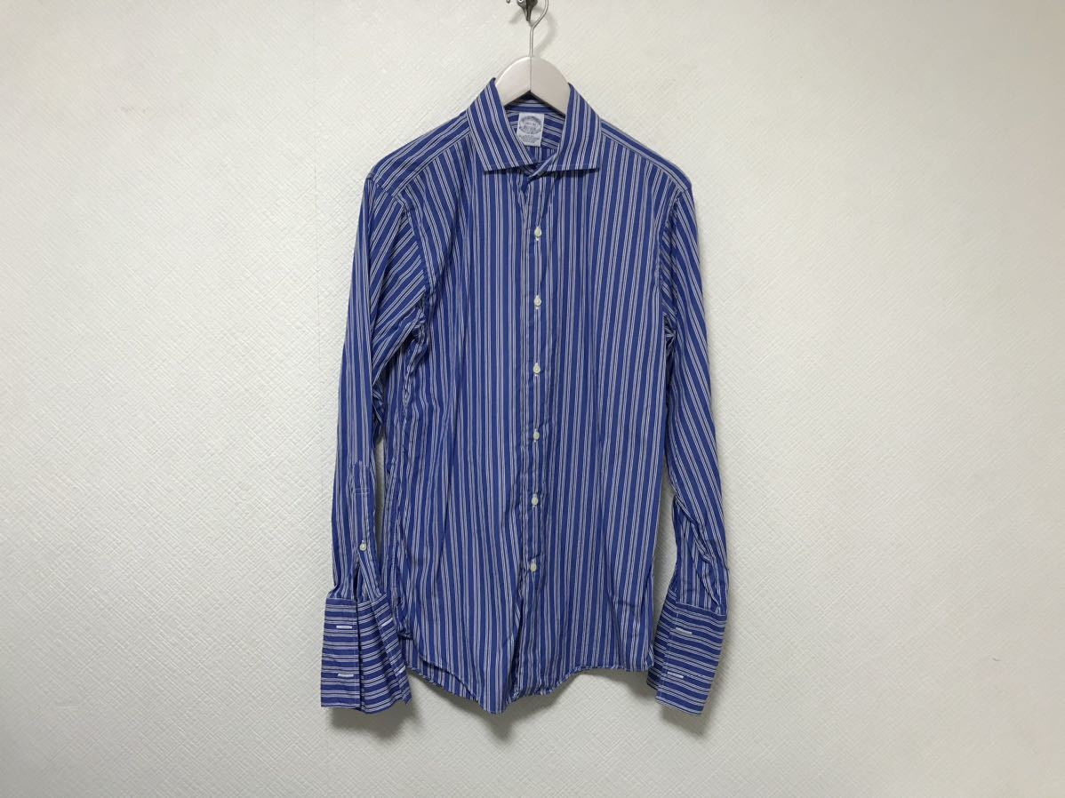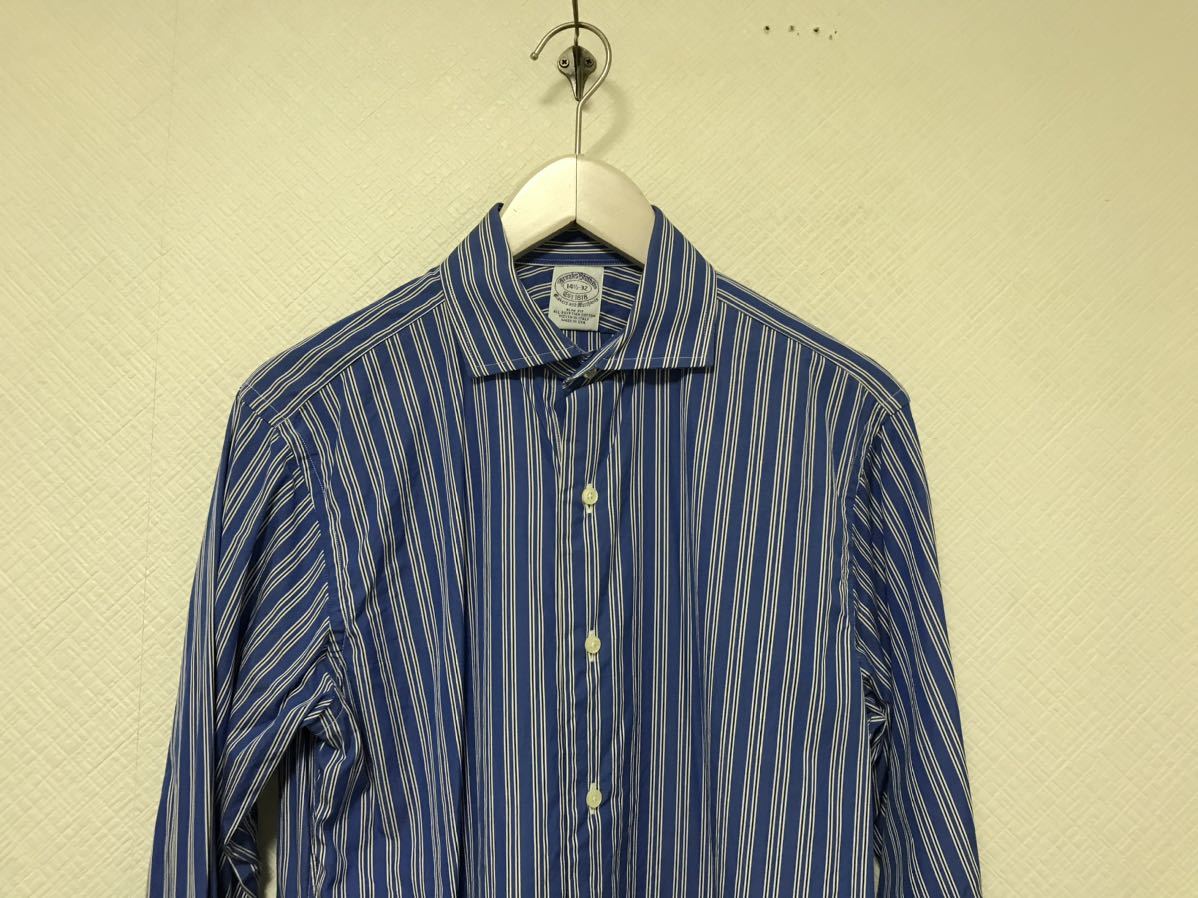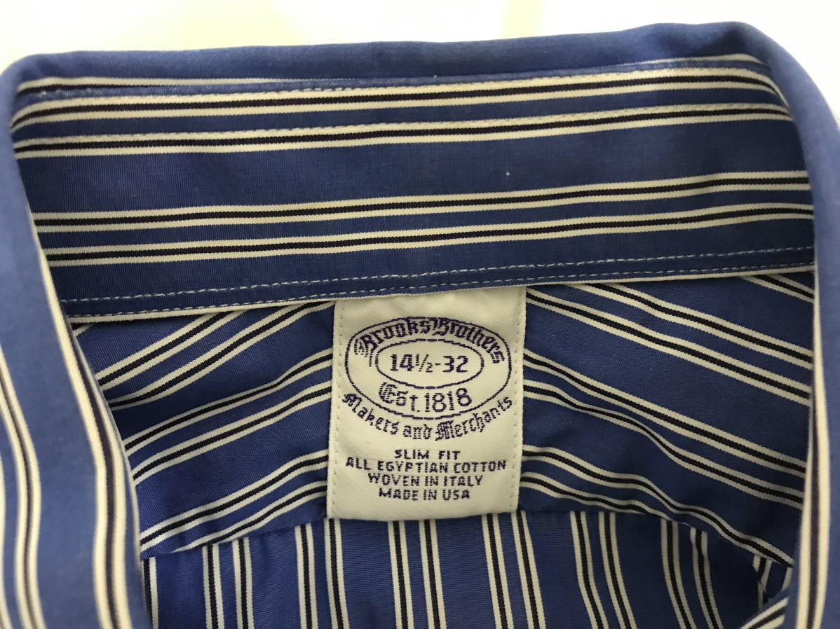 商品名:本物ブルックスブラザーズBrooksBrothersコットンストライプ柄ドレス長袖シャツメンズサーフミリタリースーツビジネス青ブルー141/2-32XS