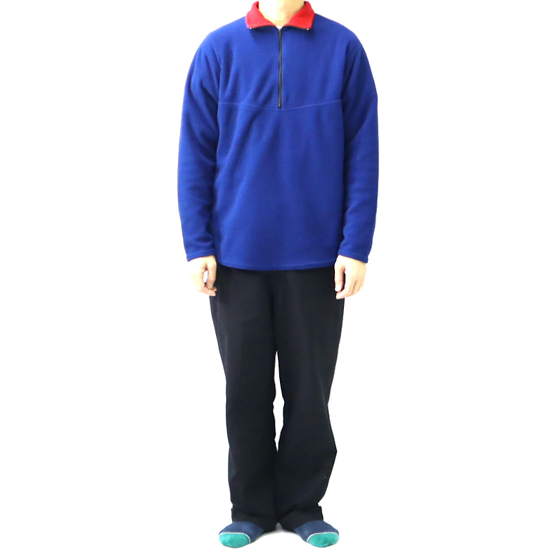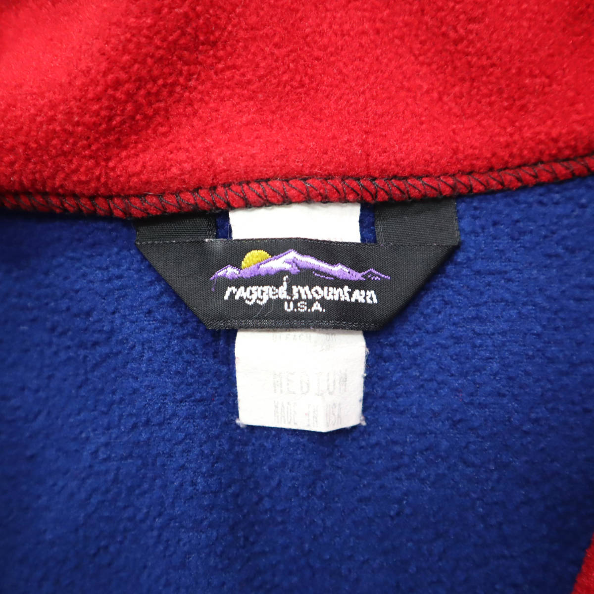 90s ビンテージ RAGGED MOUNTAIN ラギッドマウンテン USA製 ツートン プルオーバー フリース ハーフジップ アウトドア キャンプ 古着 青 赤