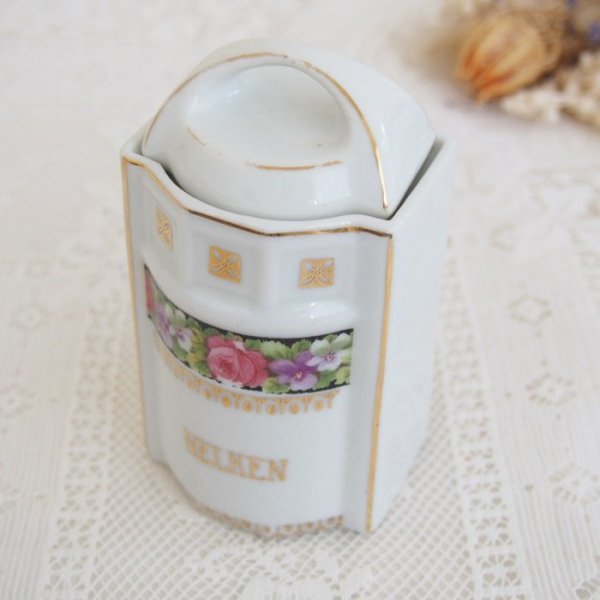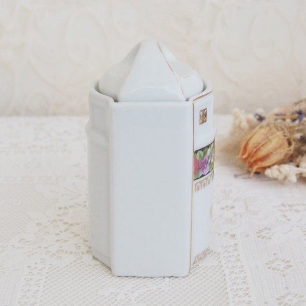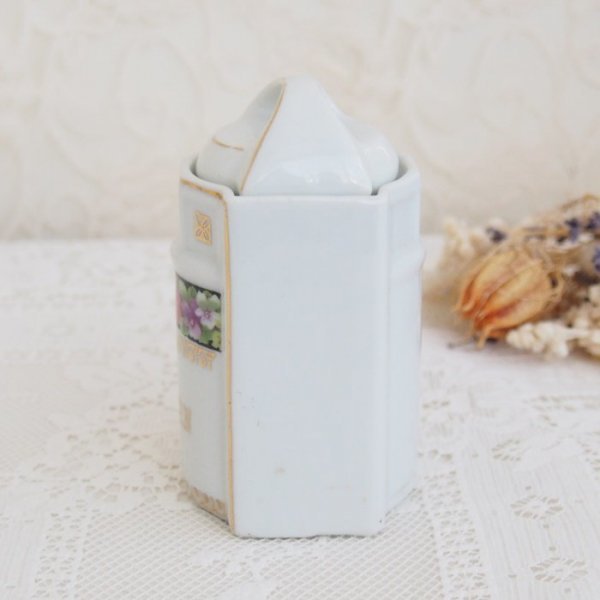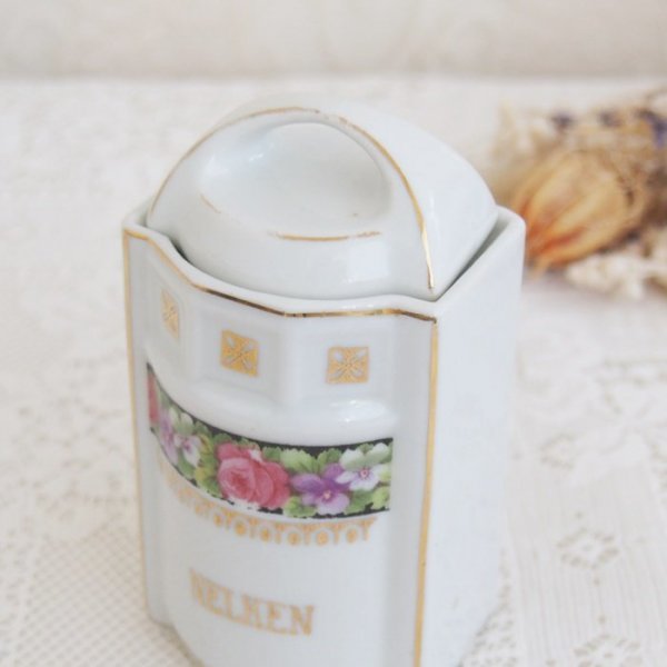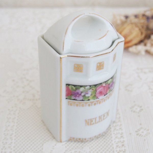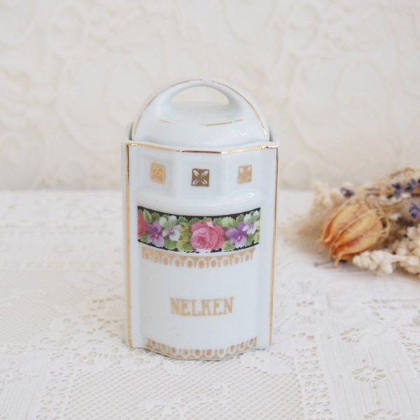 ドイツのピンクローズとスミレの模様が可愛いスパイスジャーです。 お部屋のインテリアや、サロン・お店のディスプレイにどうぞ。 経年の為、小キズ、擦れや汚れが見られます。 ペイントのロス、擦れやはがれが所々見られます。 ■サイズ: 約6㎝ x 約6㎝ 高さ11㎝(蓋を含む) アンティーク・ヴィンテージ商品には、経年による傷や劣化などがあります。 目立つものはアイテムの詳細に記載しておりますが、説明以外にもキズや損傷などがある場合がございます。 古いものですので、ご理解いただける方のみご入札下さいませ。 他サイトでも販売しておりますので、同時にご注文があった場合は、品切れの場合もあります。その場合は、大変申し訳ございませんが、ご注文をキャンセルとさせて頂きます事をご了承くださいます様お願いいたします。 | |||