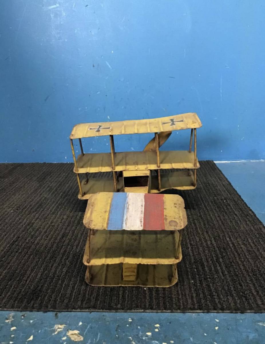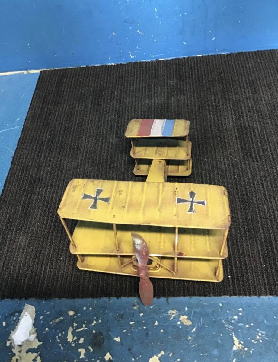 ○★岐阜発 昭和レトロ/ブリキ/玩具/三葉機/飛行機/プロペラ機/タイヤ取り付け部破損/ビンテージ/コレクション/現状品 R4.8/29★