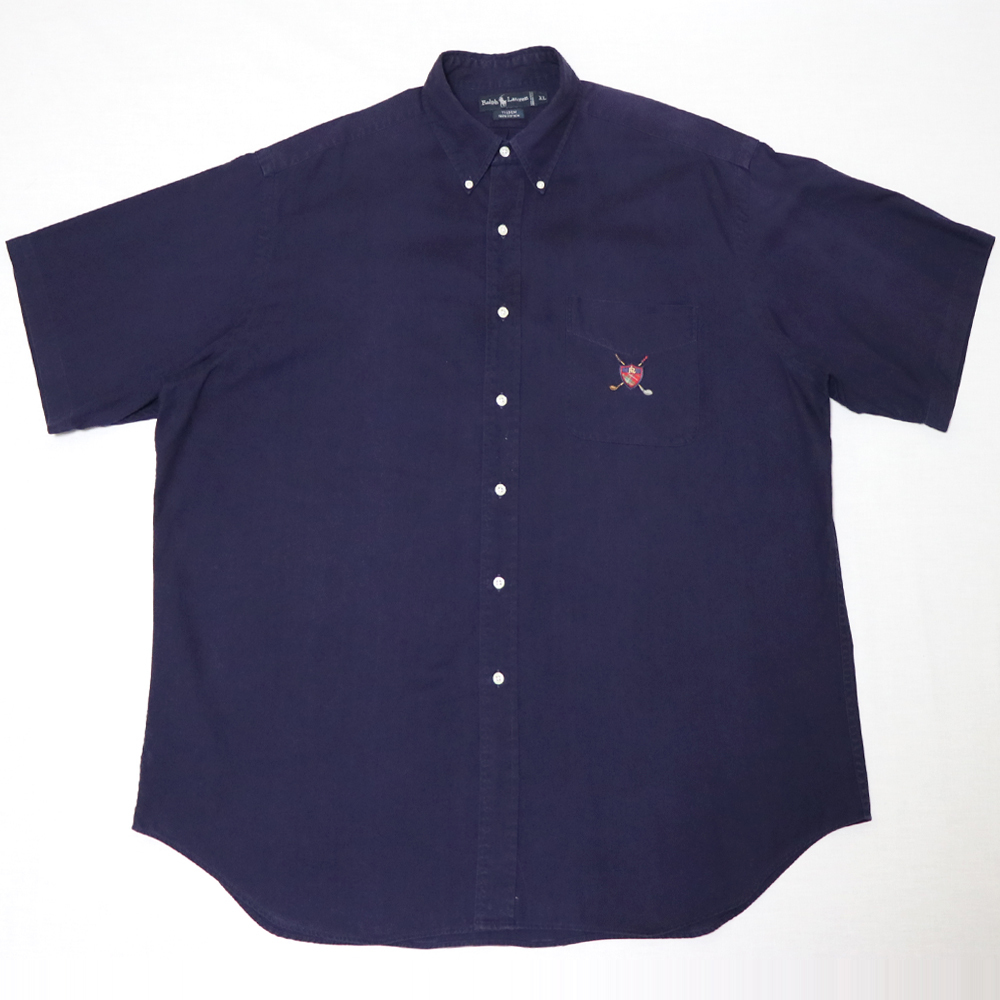 アメリカ購入品 USED品 POLO RALPH LAUREN TILDEN ポロ ラルフローレン ボタンダウン半袖シャツ 紺 RLゴルフエンブレム XLサイズです。