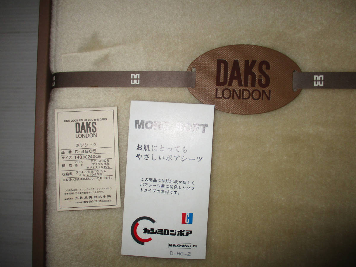 未使用☆DAKS LONDON ボアシーツD-4805です。 素材はパイル アクリル100、基布 アクリル55、ポリエステル45です。箱にスレ、傷み、剥がれがあります。その点ご理解ください。