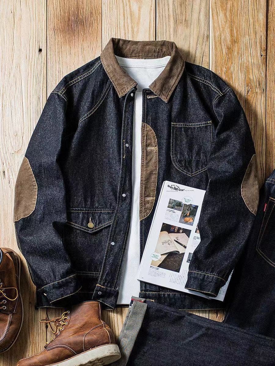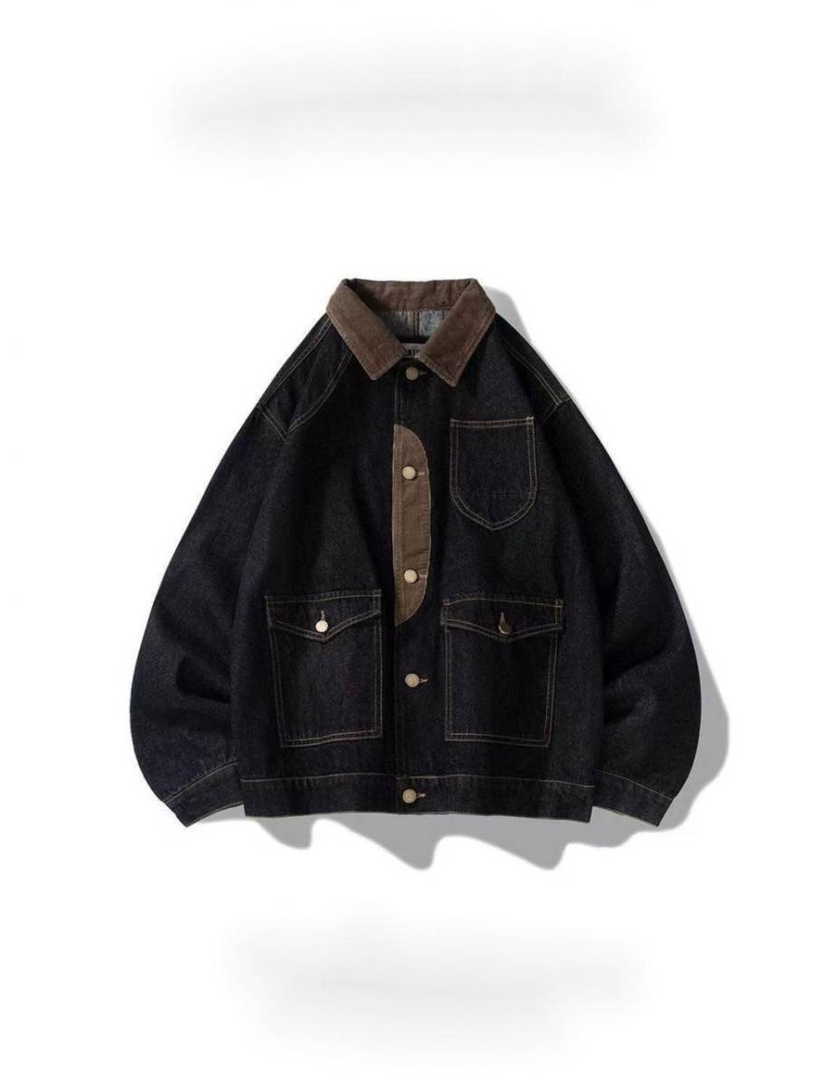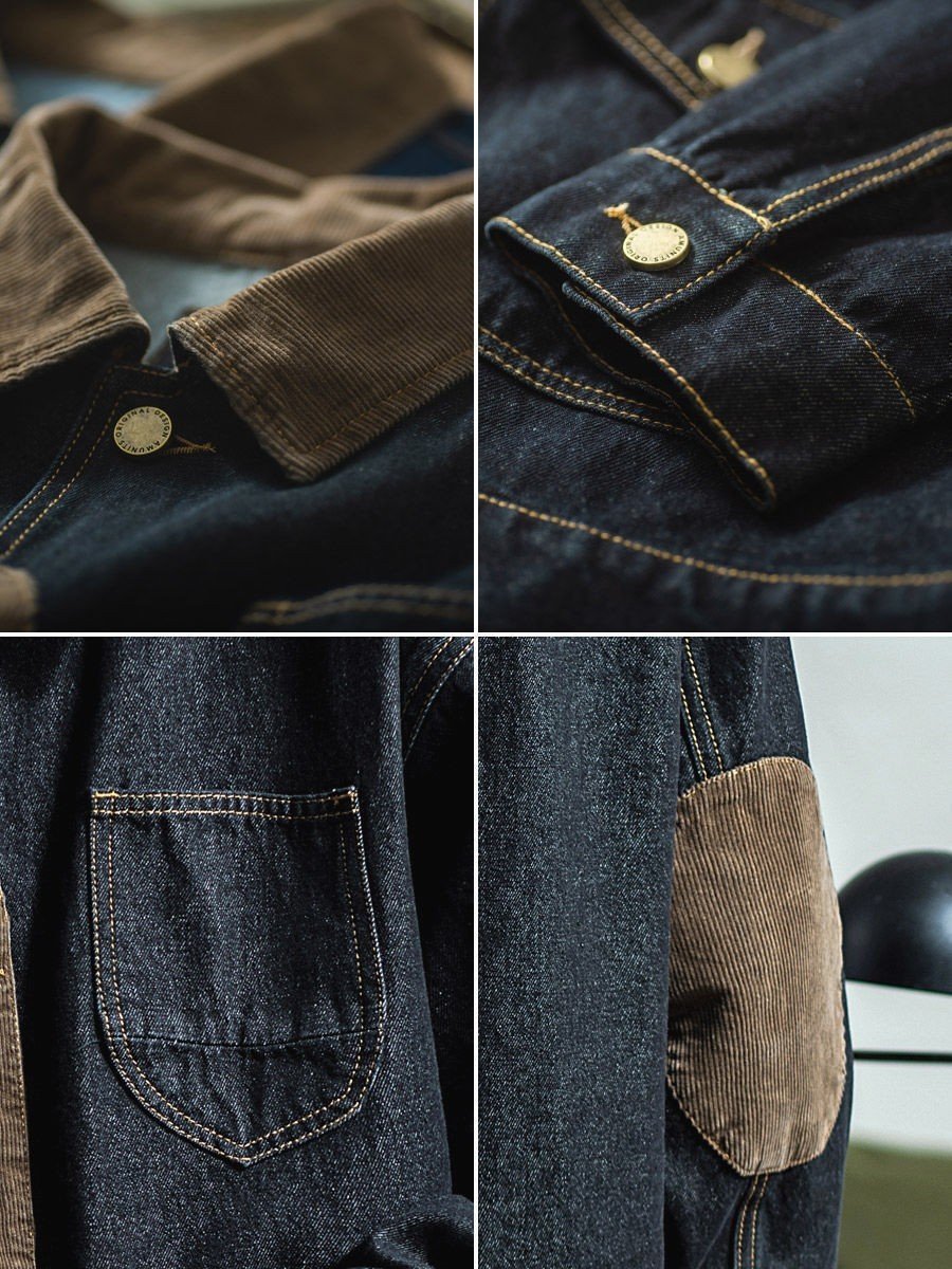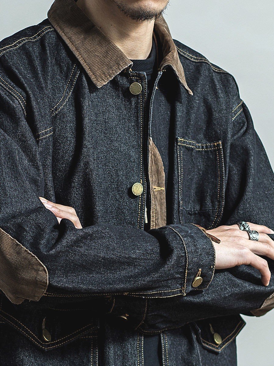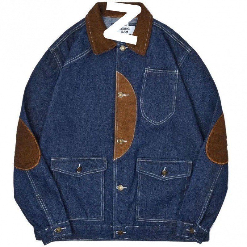 ゆったりシルエットが気分 コーデュロイ切り替え ヴィンテージ復刻コットンデニムカバーオールジャケット カジュアル M~5XL未使用 ブルー