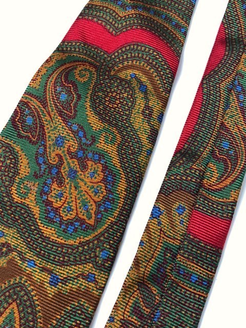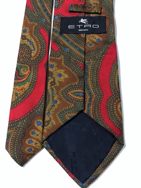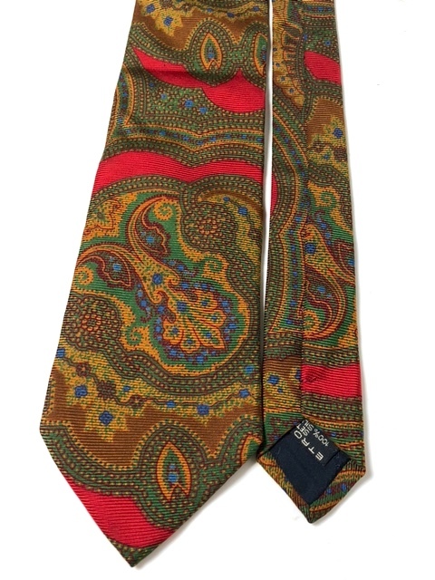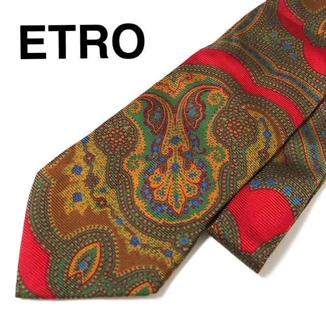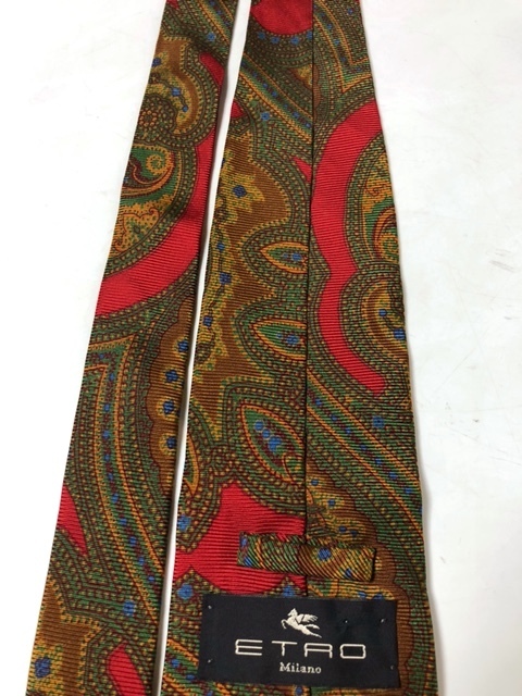二点以上で送料無料! 2A40 イタリア製【極美品】ETRO エトロ シルク100% 高級ネクタイ 剣先幅9㎝ ペイズリー柄 ブラウン グリーン