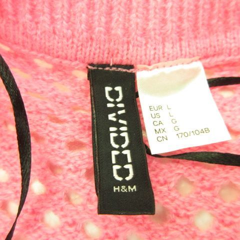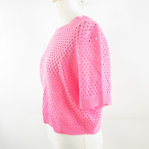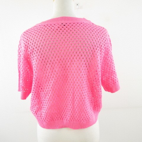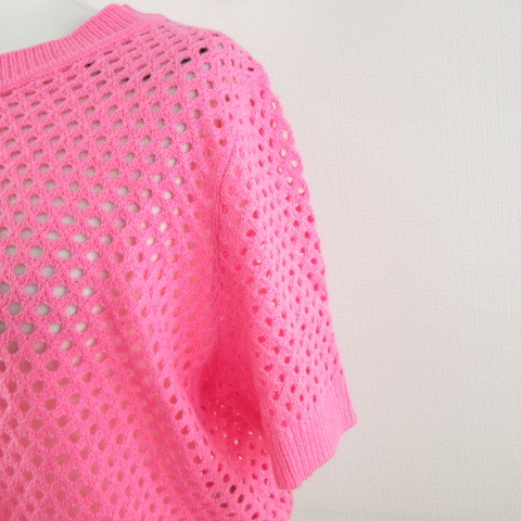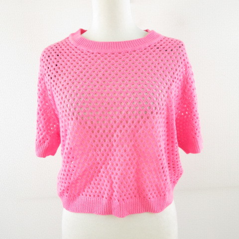 エイチ&エム H&M メッシュニット ショート丈 半袖 ピンク L *A465 レディース