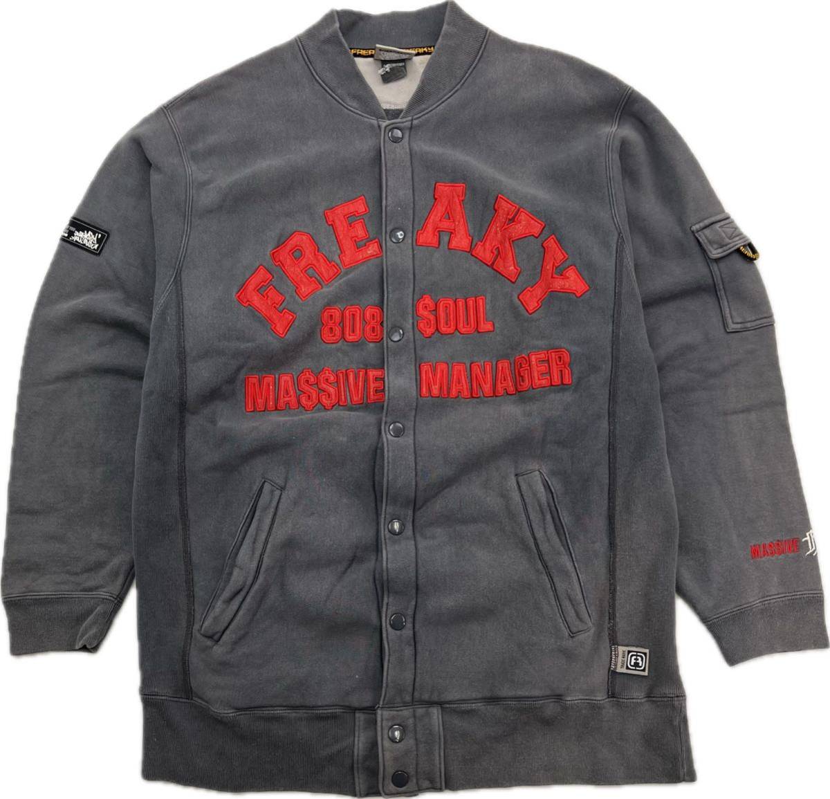 | サイズ表記・実寸(平置き計測) 表記:L 実寸: 着丈78cm 身幅57cm 肩幅49cm 袖丈58cm ※必ず実寸をご確認の上、ご入札ください。 ※多少の誤差はご了承ください。 |