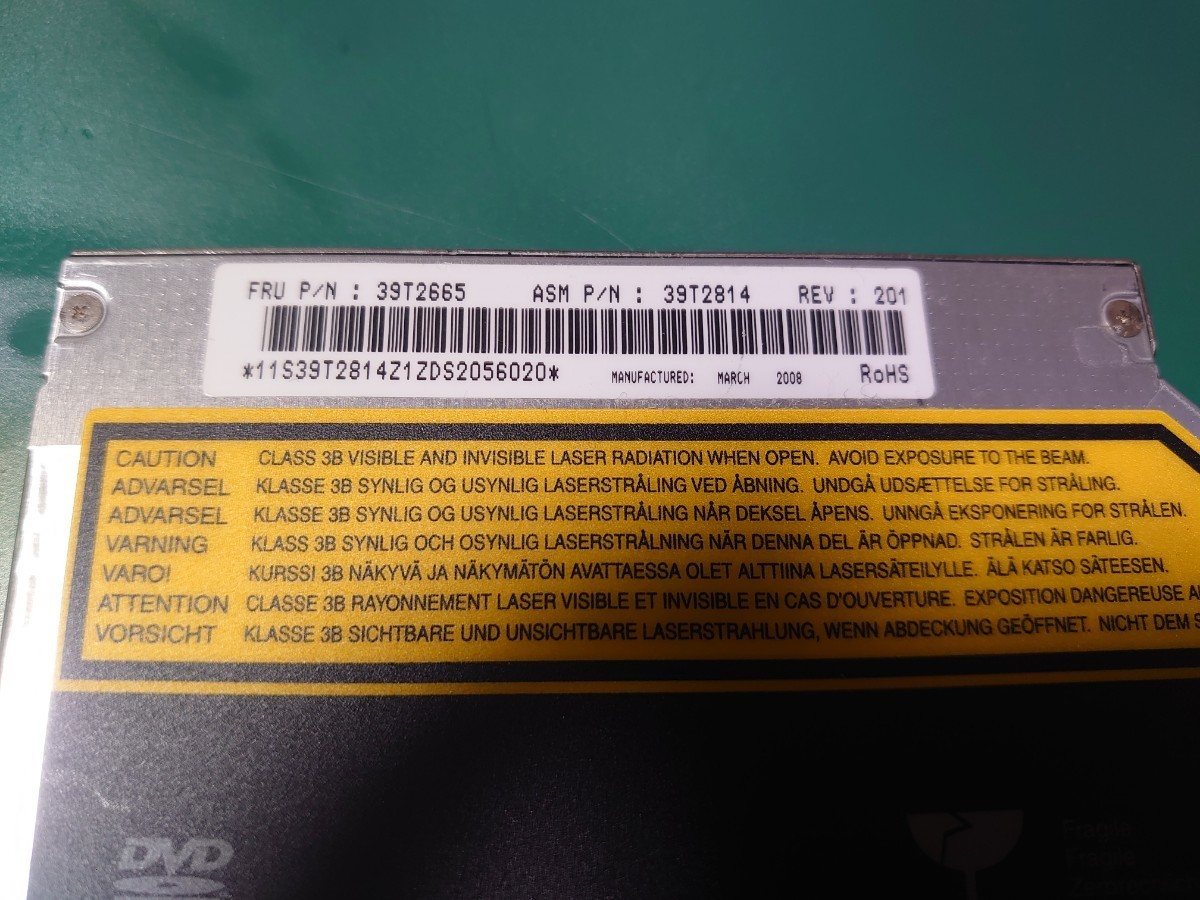 LenovoのThinkPad(R61e 7650-A37)から取り外した光学ドライブです。