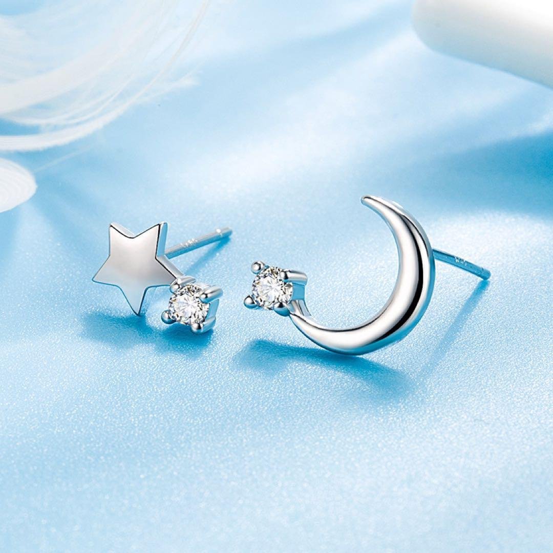 新品 星月ピアス レディース 大人気 シルバー925 ピアス アレルギー対応