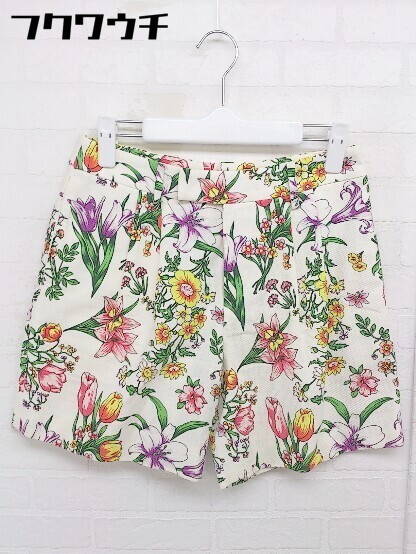 ◇ Unaca アナカ 花柄 ショート パンツ サイズ36 オフホワイト マルチ レディース