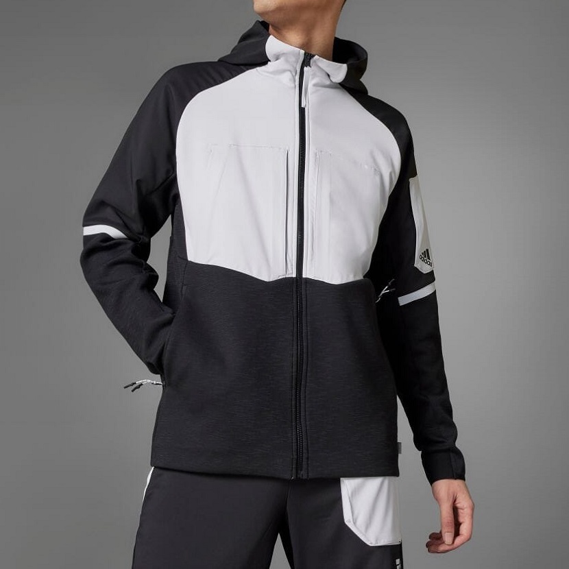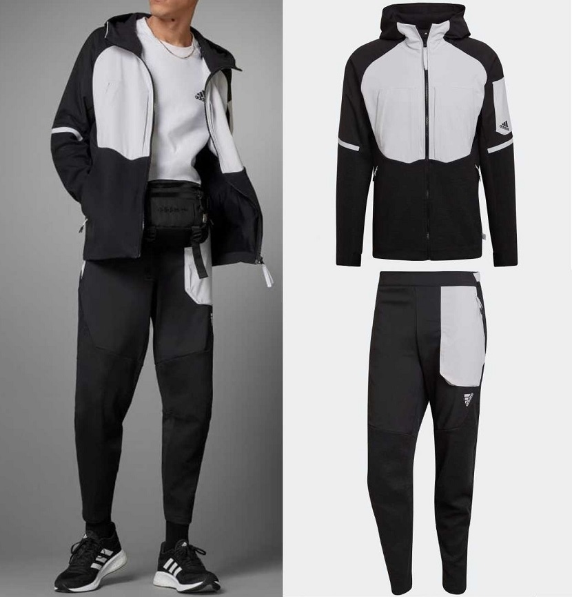 アディダス XO メンズ DESIGNED FOR GAMEDAY プレミアム フルジップフーディー ジャケット パンツ 定価24500円 上下 ブラック ホワイト 2XL