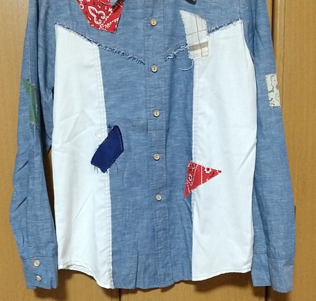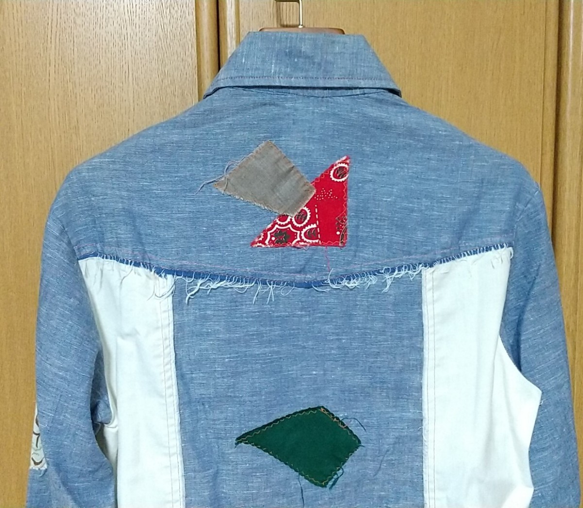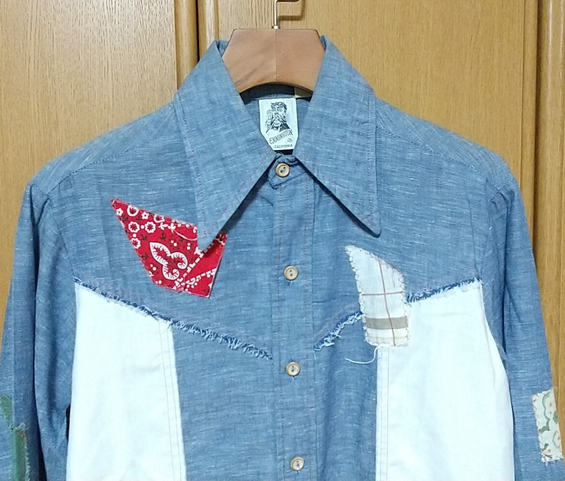 切り返しやパッチワーク、70年代特有の大きい襟が特徴的です。