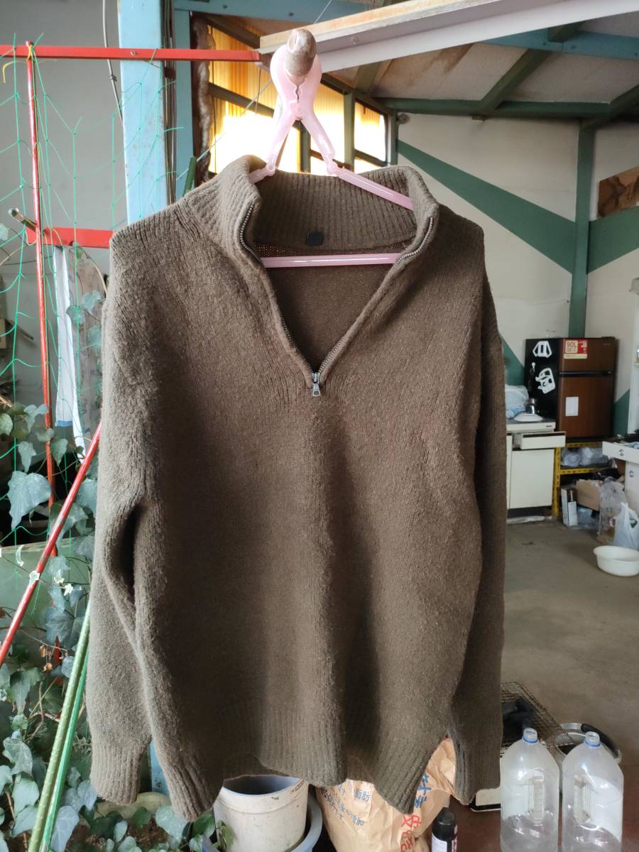ユニクロ ハーフジッパー ダークグリーン 厚手セーター S 新品同様