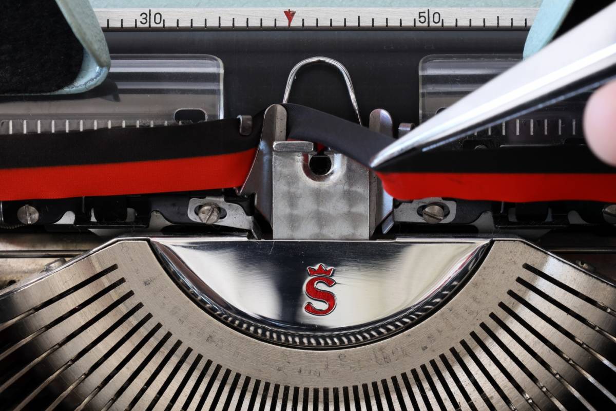 手動式のタイプライター用リボンを交換する際、多くの方は素手で交換されていると思いますが、どうしても手がインクで真っ黒になってしまいます。