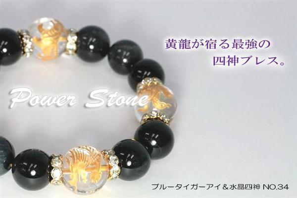 天然石 パワーストーン ブレスレット 青虎目(ブルータイガーアイ) 水晶 四神 パワーブレス 風水 運気上昇 黄龍 四神獣 No34