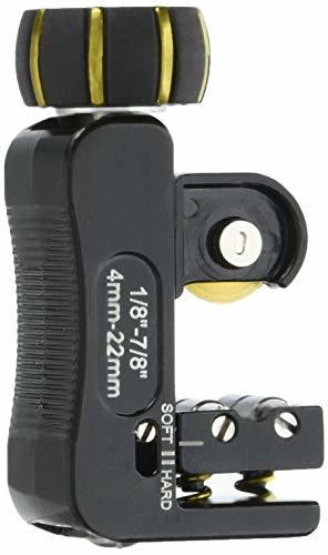 ・ TA560SM・適合銅管外径:3/16~7/8(4.76~22.23mm)・全長:75.5mm・標準装着刃・□スプリング内蔵で、ハンドルを増し締めせずに銅管を切断可能。・ハンドル側から刃を送りだすので使いやすいです。スマートミニチューブカッター。 一般的なミニチューブカッターと違い、普通サイズのチューブカッター同様、ハンドル側から刃を送り出すのでとても使いやすいです。