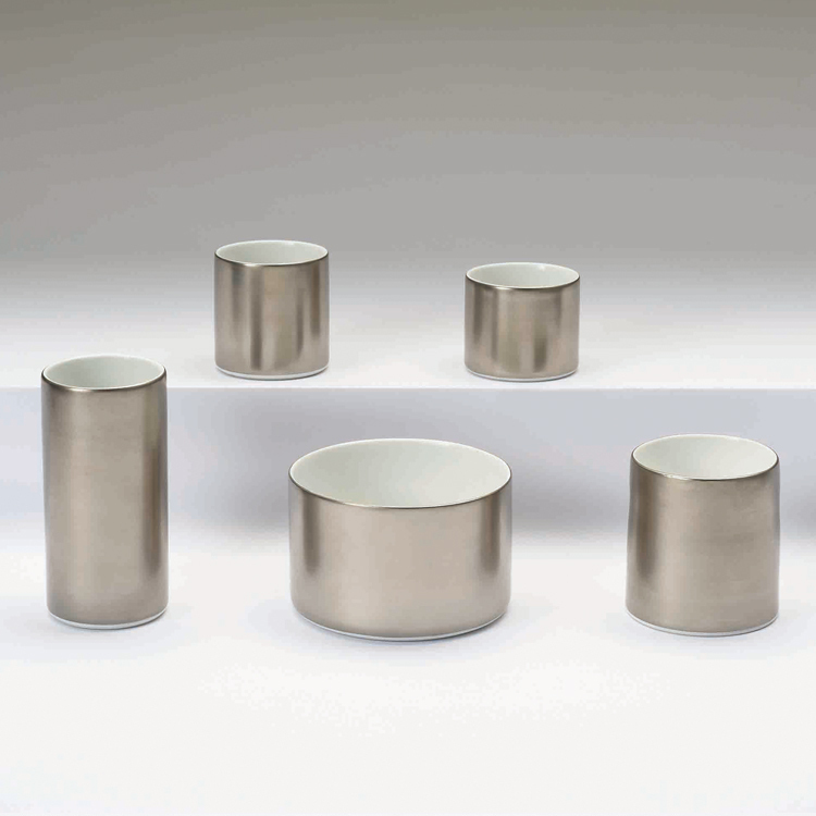| 商品説明 | 【商品コード:2897】 ■材質詳細 ・シリーズ:五具足セット・具足単品 ・サイズ: 花立/φ5cm 高さ10cm 香炉/φ9cm 高さ5.6cm 火立/φ6.1cm 高さ6.6cm 茶湯器/φ5cm 高さ5.2cm 仏飯器/φ5cm 高さ4.2cm ・主素材/磁器(有田焼) ・生産国/日本製 ・付属品/クリスタルビーズ/セーフティーキャンドル/フェルト ■宗派 どの宗派でもお使いいただけます。 ■備考 ・お取り寄せ商品となっております。在庫状況はお問合せ下さい。 海外で評価を受けている有田焼でモダンな仏具を作りました。 これまでの有田焼のイメージを替える、シンプルで薄く繊細な仕上がりが特徴の職人手作りのお仏具です。 高級感のあるモダンな有田焼の五具足。刷毛塗りされた白金の釉薬は優しく周囲を映し出します。高級感のあるモダンな有田焼の五具足。 | |