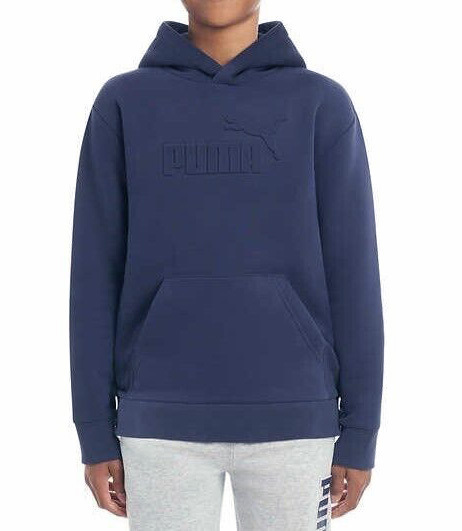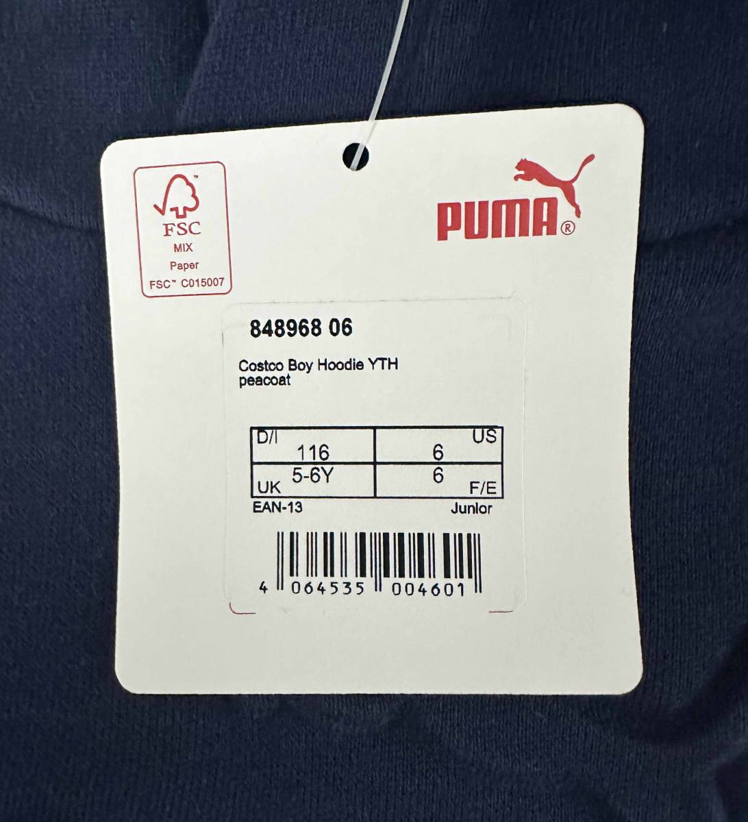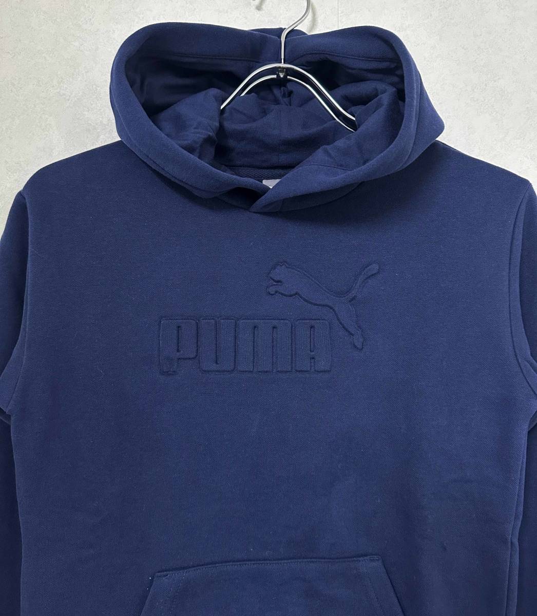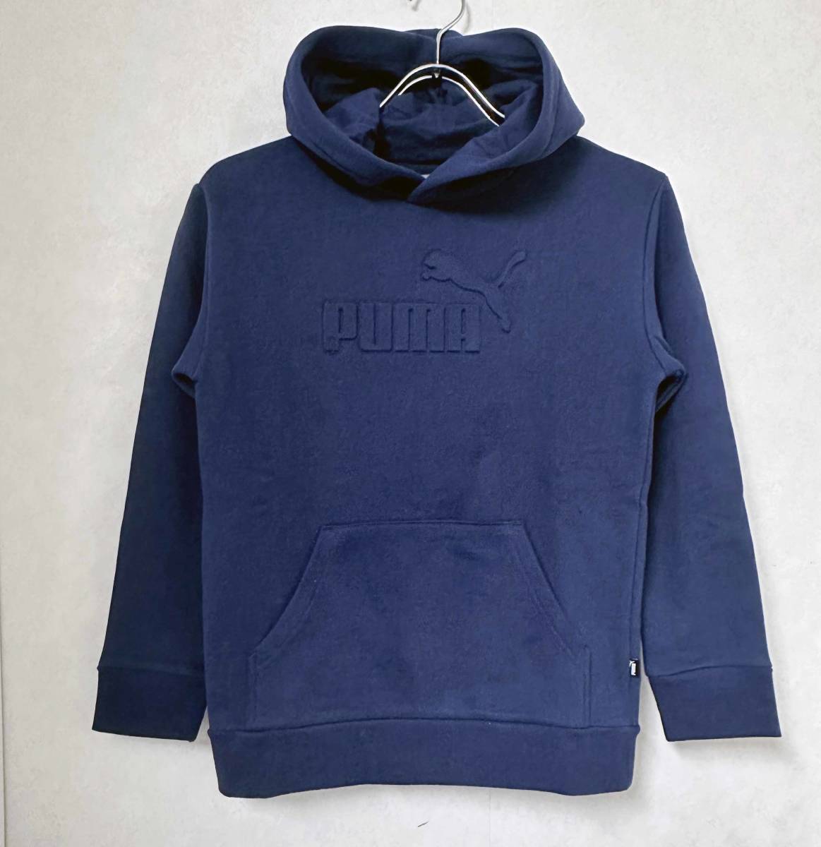 新品 120 ★ PUMA プーマ 3D ロゴ パーカー 裏起毛 ネイビー 116 5-6Y ジュニア ボーイズ ガールズ エンボス フーディ トレーナー コストコ