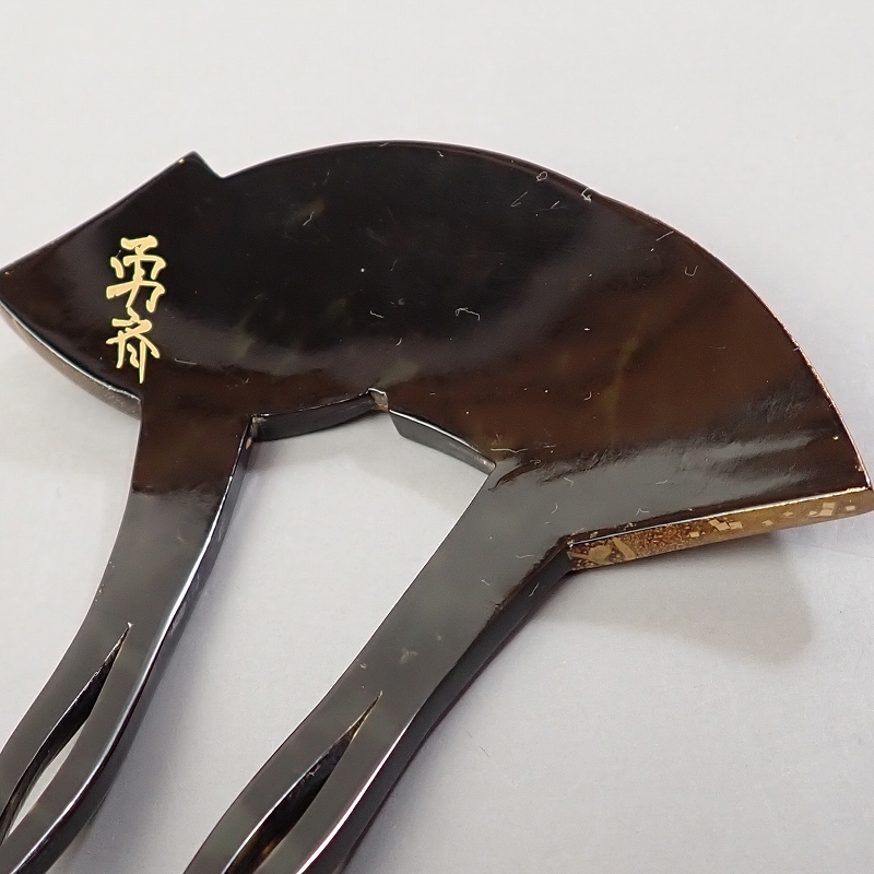 | AC-3820◆勇斎作 本べっ甲 かんざし 扇面に蒔絵 | ||