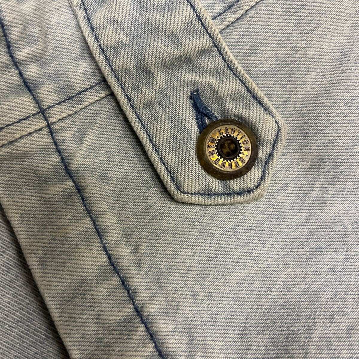 多少の変色や汚れなどありますが、ビンテージ品の為、そのような加工かは不明です。