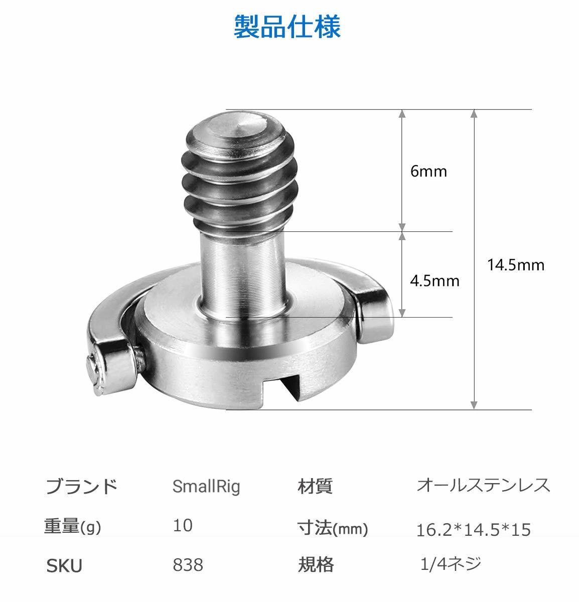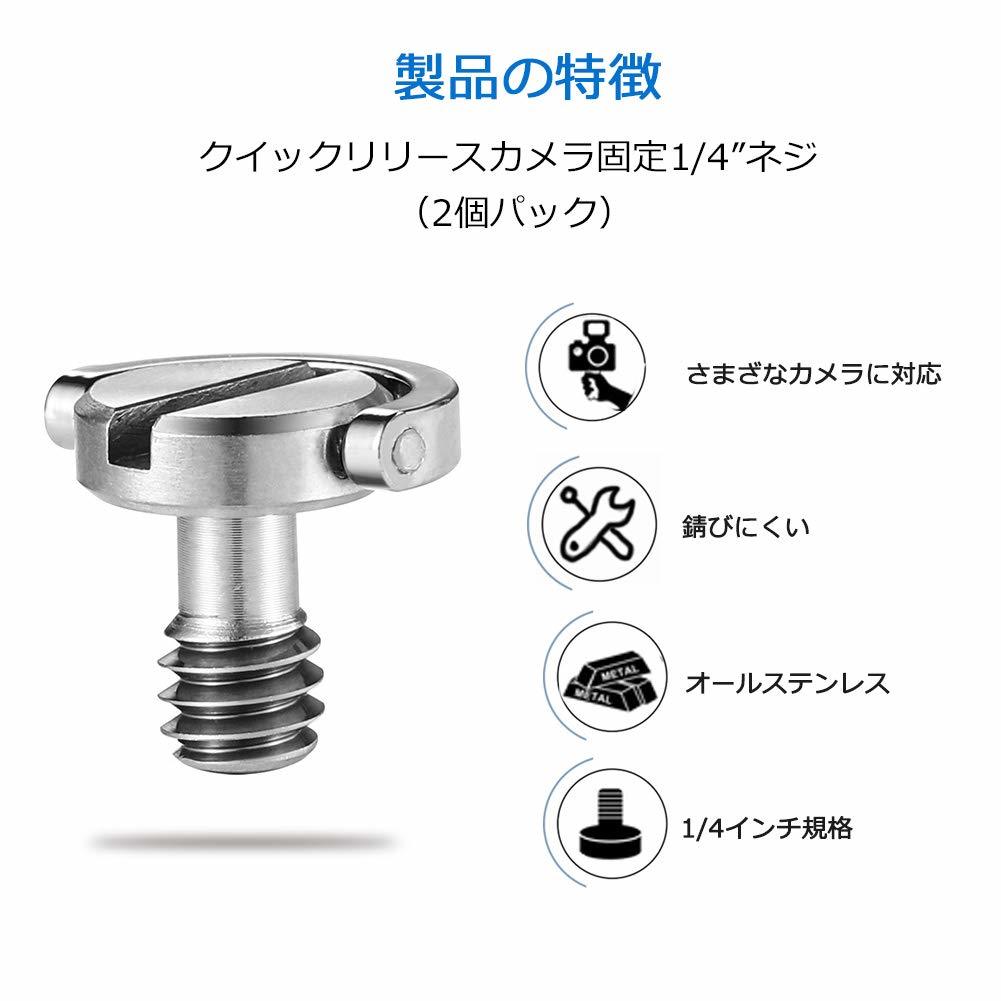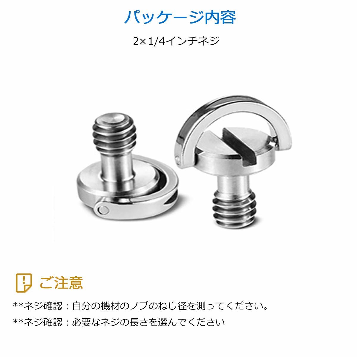 このセットには、1/4インチネジが2個含まれており、1/4"-20スレッド規格に対応しています。