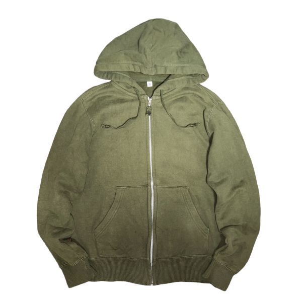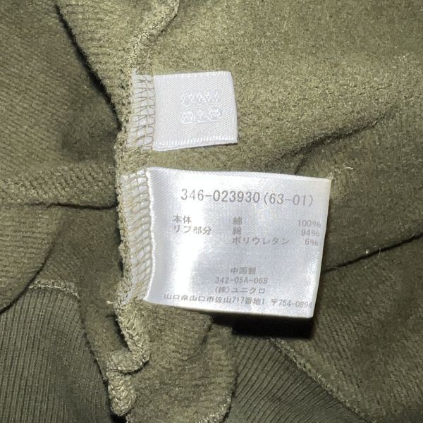★UNIQLO★ スウェット ジップアップ パーカー sizeS カーキ ドローコード ユニクロ クリーニング プレス済み USED sn193