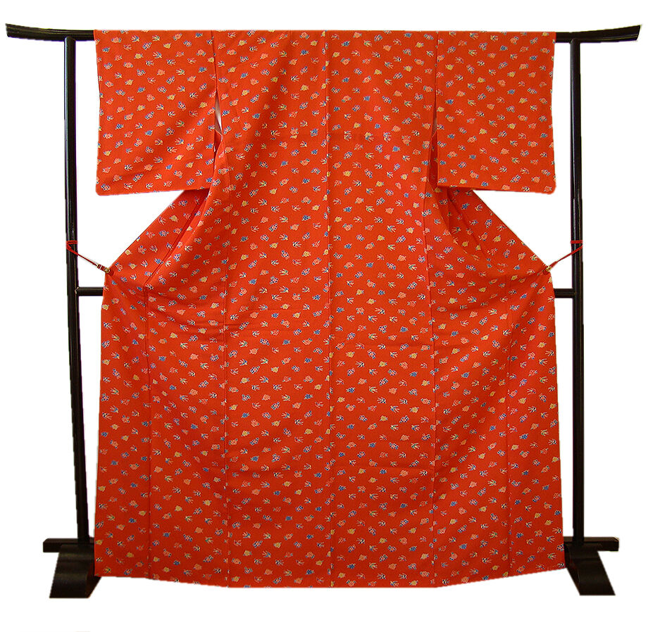 ※可愛いジュニア用のお手入れ簡単なポリエステルの小紋です。 お茶やお花、舞台衣装に幅広いシーンにお召し頂きたいものです。 10代~20代の身長152cm~158cmの貴女に最適です。 |